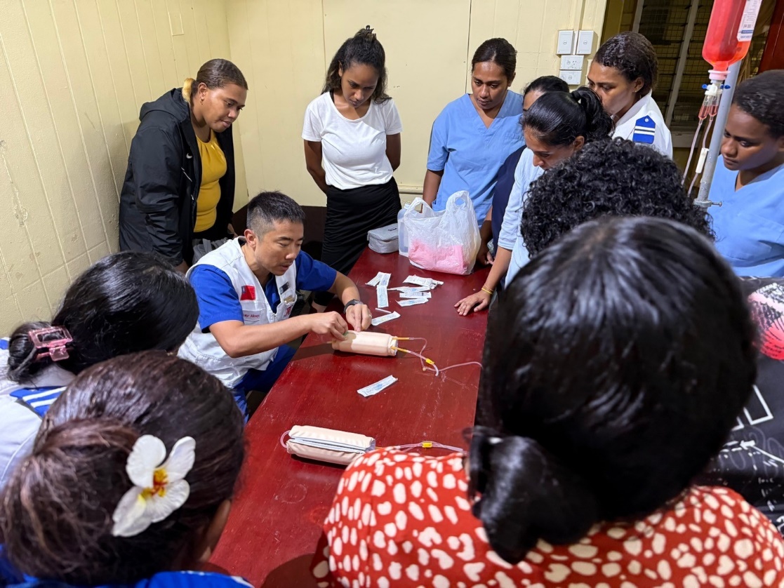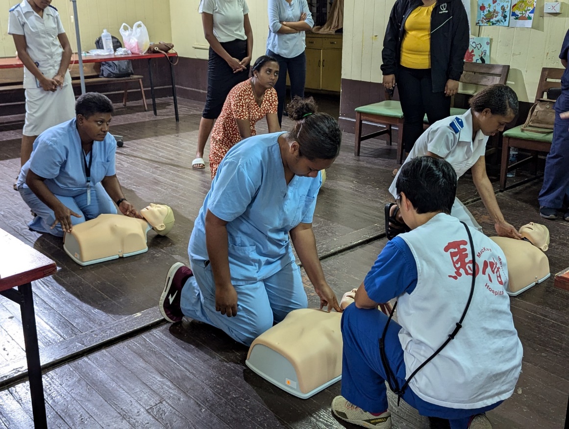 除了日常的診療服務外,馬偕醫療團也積極與斐濟醫療人員進行專業知識的交流,舉辦了四場專題研討課程,每場教學人數約為 10 人,大多為院內的資深醫師,提升當地醫護人員的專業能力,特別針對緊急救護和常見疾病的診治技巧。