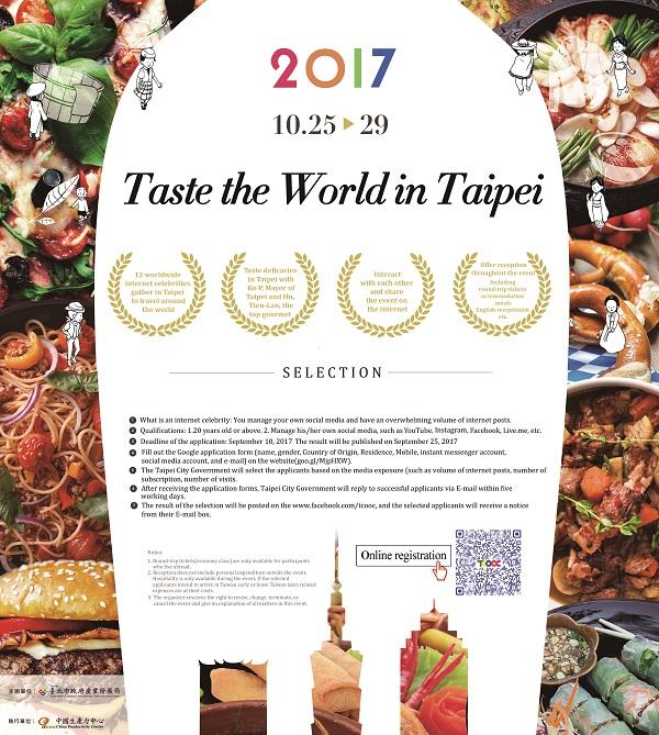 Taipei City Government is going to host 2017 Internet Celebrity Summit in Tapei from 25th to 29th October 2017. Internet celebrities from all over the world are invited to join the summit with the experience to taste the best of the world in Taipei.