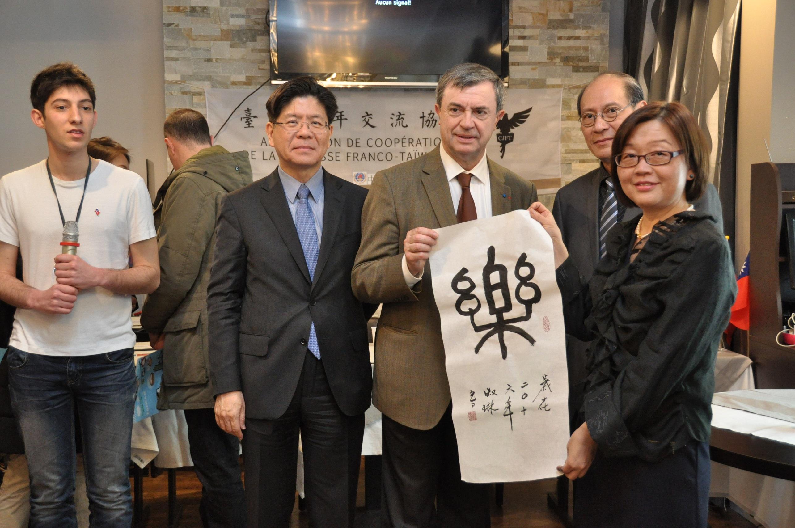 巴黎第六區區長出席第一屆「巴黎台灣文化節」活動獲書法家致贈墨寶