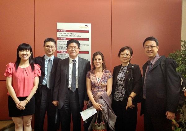 駐法國大使張銘忠與南科蘇振綱副局長(左二)、左起王雅嫻科長、雷恩第一大學國際處Lucy Berthet女士、科技組鄒幼涵組長、金屬中心/經濟部航空小組雷震台副主任合影