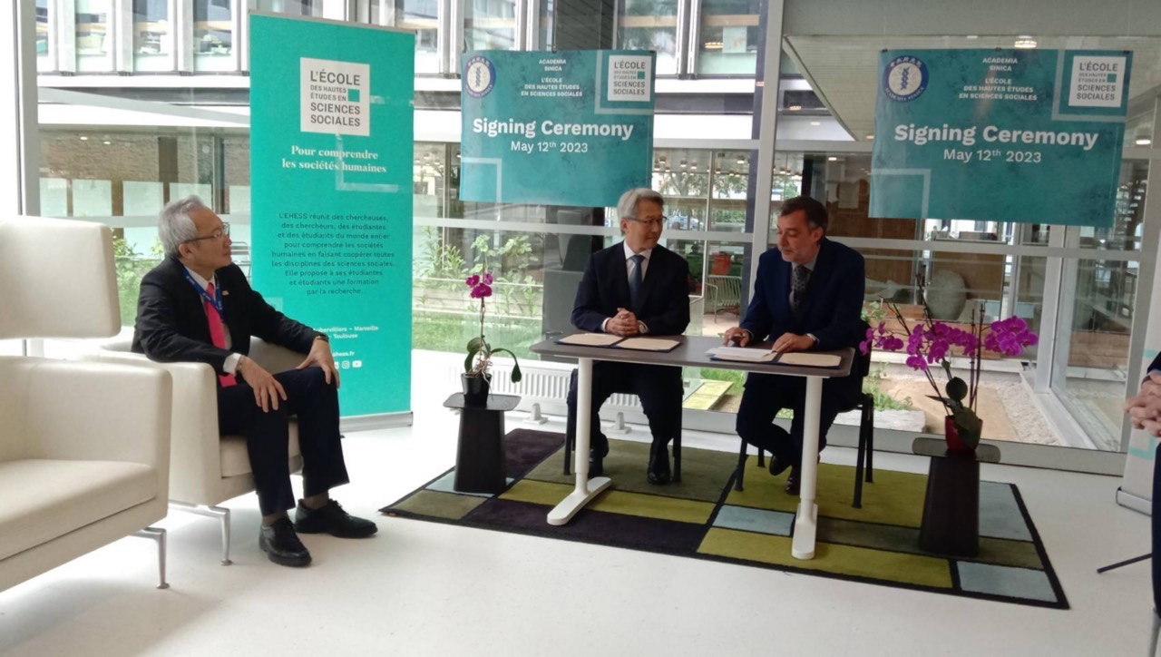 中央研究院廖俊智院長於本(2023)年5月10日至13日,率該院人文及社會科學主管及專家數名訪問法國,並在5月12日與法國高等社會科學院(EHESS)簽署雙邊合作協議。廖院長指出,本次合作係中研院近年力推之學生培育計畫下的第一個國際合作協議,盼藉此契機增強兩國在人文與社會科學領域之研究與合作交流。本處吳志中大使應邀偕科技組及教育組同仁出席見證簽約儀式,之後並與中研院合作在本處舉辦雙邊簽約慶祝晚宴,與法方充分就當前兩國人文社會政經情勢交流。
