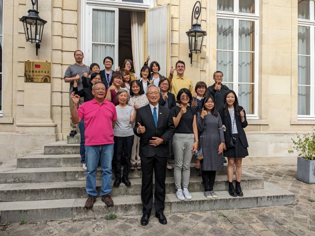 駐法國代表處於9月28日教師節舉辦「2023年法國地區華語文教師節茶會」,由吳大使志中(前排中)主持