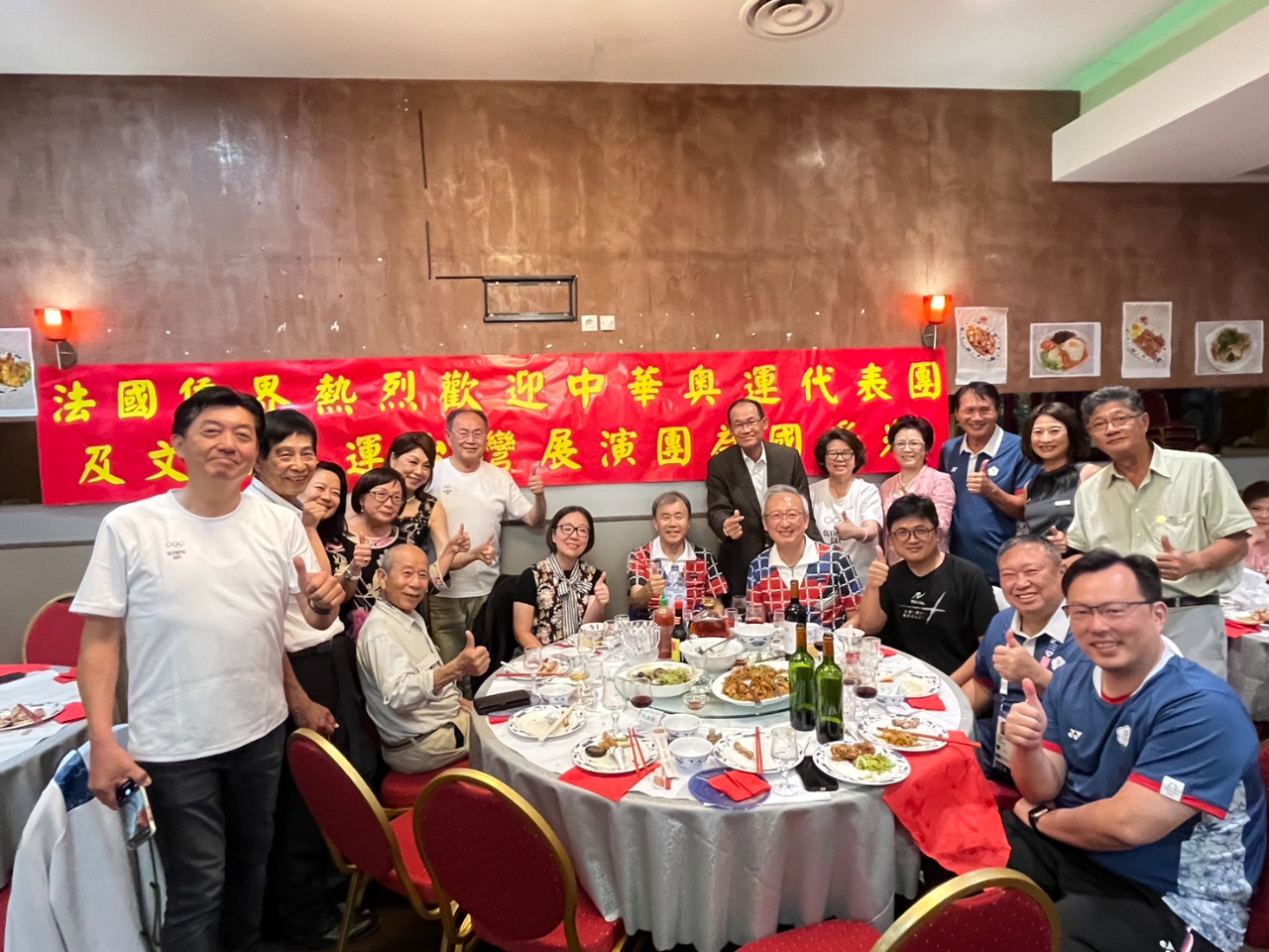 此刻2024年巴黎奧運及文化奧運熱烈舉辦中,各比賽項目前在法國巴黎及各地熱烈展開,與此同時臺灣受邀參加文化奧運設置臺灣館,邀請22組表演團隊展現臺灣文化藝術,中華奧運代表團及文化奧運臺灣展演團陣容龐大,總人數約500人,法國僑界為歡迎並為代表團加油打氣,於7月29日晚間於巴黎近郊托爾西(Torcy)舉辦「法國僑界熱烈歡迎中華奧運代表團及文化奧運臺灣展演團為國爭光」餐會。