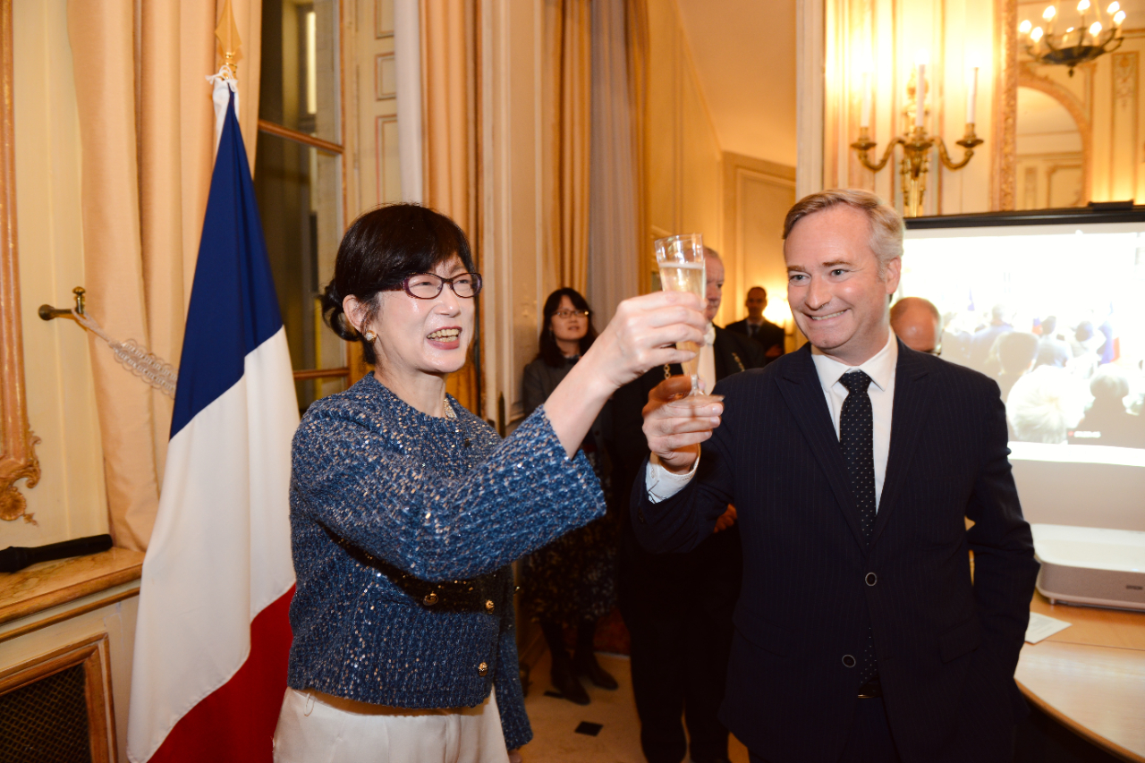 酒會在我聲樂家演唱台法國歌及台語歌曲「臺灣頌」聲中拉開序幕,郝大使首先致詞後,法國參議院友台小組主席Jean-Baptiste Lemoyne亦代表致詞,祝賀我國運昌隆,台法友誼長存。酒會除提供中式餐點及法國香檳美酒外,並特別準備鹽酥雞等台灣特色小吃,供外賓品嘗享用,酒會持續逾3小時,氣氛十分熱烈。