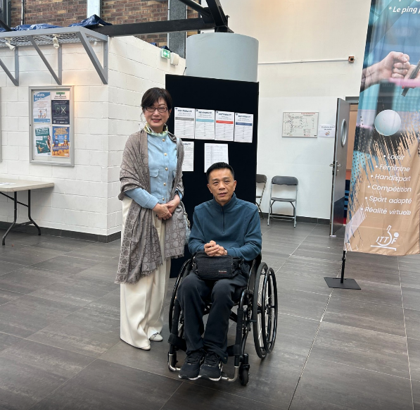 台灣代表隊於本(10)月28日至30日參加法國瓦桑勒布勒托訥(Voisins-le-Bretonneux)帕拉桌球公開賽,駐法國大使郝培芝於本月30日上午親赴比賽會場為我國選手加油打氣,郝大使特別關心選手們在法國參賽期間適應情況、生活起居及需要協助的地方,也全力支持我國身障選手參與國際比賽,郝大使另鼓勵我國代表隊時表示,台灣代表團參加2024巴黎帕運勇奪3銀2銅,桌球選手全員奪牌,為歷屆最佳,成績亮眼,期盼選手們以進軍下屆洛杉磯帕運為目標,再為台灣爭取榮耀,代表隊感謝郝大使親自來比賽會場為選手們加油打氣,也感動地說,在異鄉感受到駐處的溫情及關心,有回家的感覺。