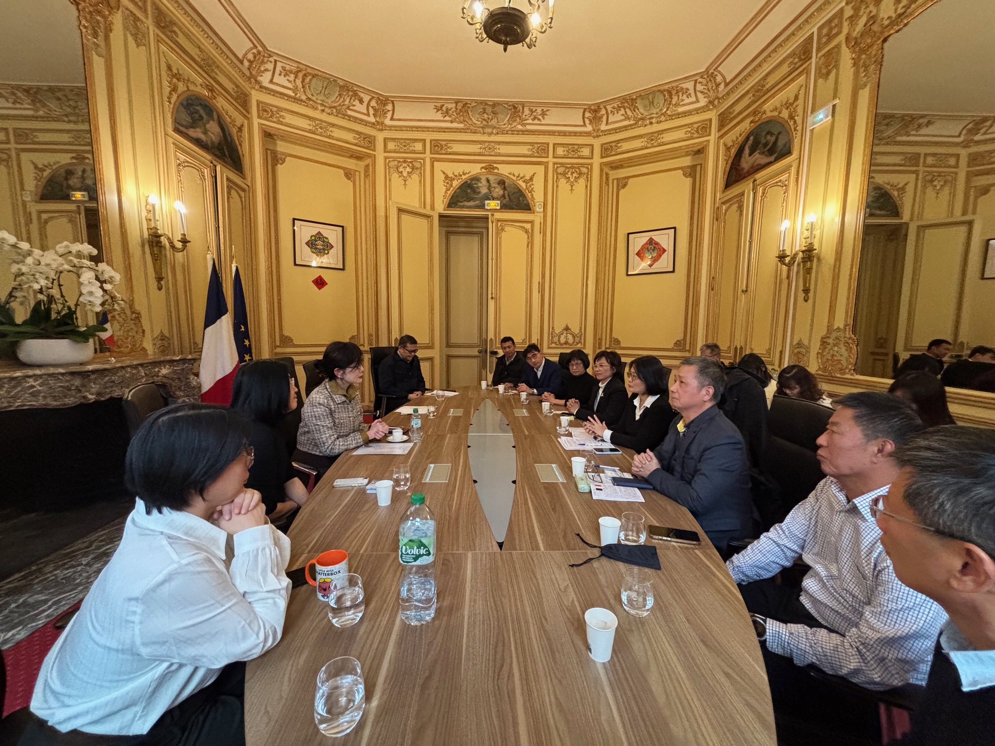 代表處文化組胡主任另與訪團就推介台灣與南投藝術家來法展演細節、南投在地文化特色、台法地方政府策展連結與南投預計興建的美術館與演藝中心於興建後的營運與維修等議題進行交流。