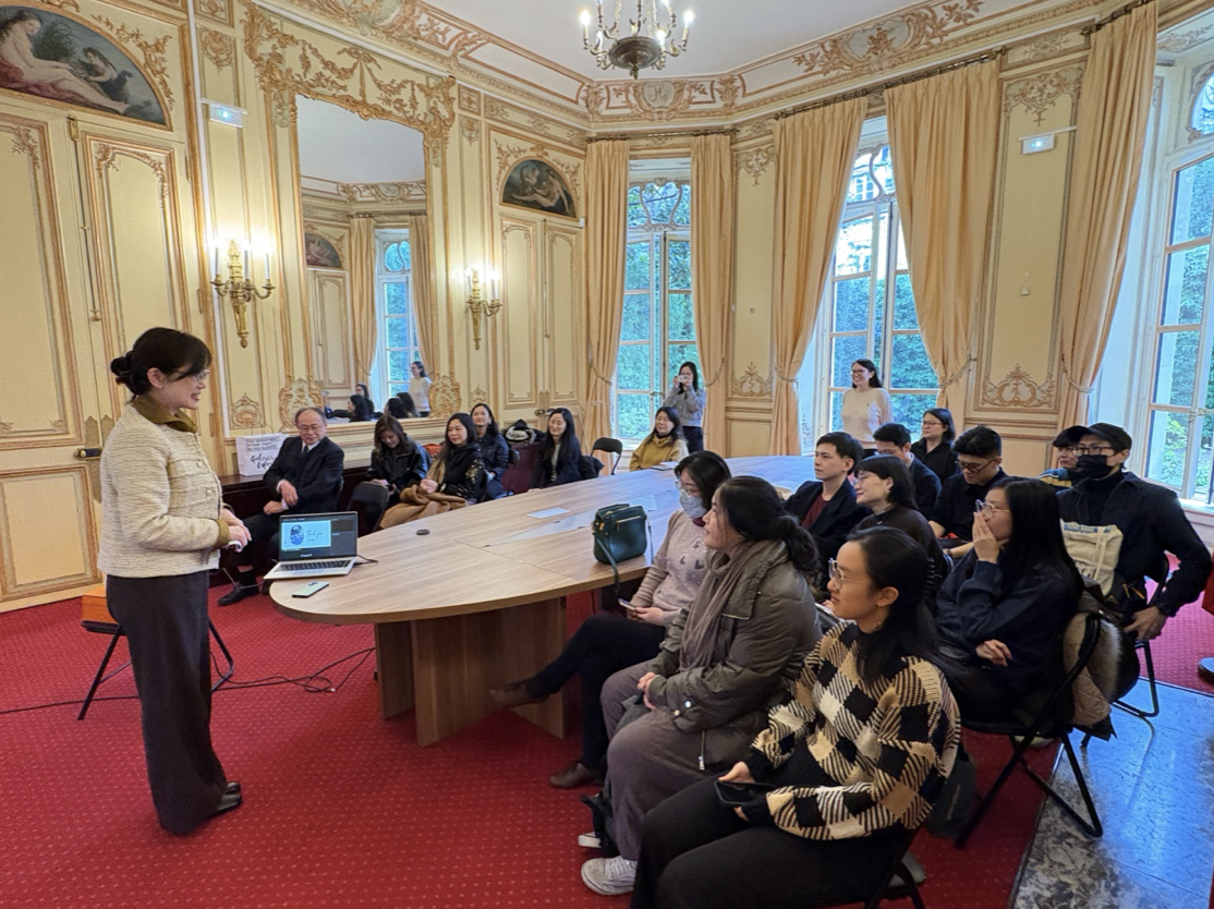 郝大使致詞時表示,法國臺灣青商一直都很積極為大家打造交流與連結平台,這次邀請法國臺灣女力新知會中2位不同的專業領域及經歷的會員,與大家分享她們的求職經驗,期待大家從中得到新的啟發與靈感,進而對大家在創業、職場發展及跨文化的適應的不同挑戰有所幫助。