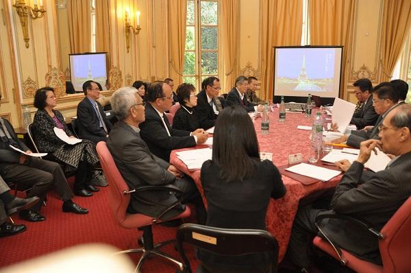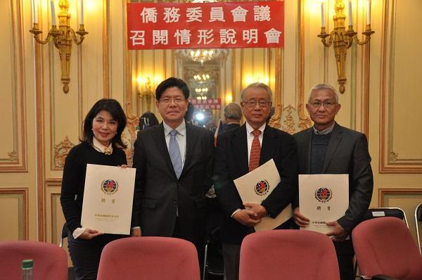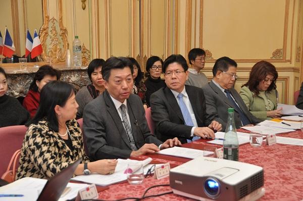 駐法國代表處於105年12月2日(星期五)上午10時30分在會議室舉辦「105年僑務委員會議召開情形說明會」,由張銘忠大使主持;黃行德僑務諮詢委員、黎輝僑務諮詢委員、陳秫娟僑務諮詢委員、林奇雋僑務委員、李永慶僑務委員、曾金華僑務委員及21位旅法僑務榮譽職人員、僑團會長、僑校校長及僑青幹部共聚一堂,聽取簡報並就僑界關心議題廣泛交換意見。 張大使首先致詞感謝在座僑界先進撥冗前來與會,他指出本年僑務委員會議成果豐碩,除特別肯定三位僑務委員返國參加會議,為協促法國僑社團結和諧,提升僑民福祉發聲,並期勉大家繼續為推動僑社永續發展共同努力。大使嗣請僑務組林宏穎組長簡報本年僑務委員會議召開情形,並依序邀林奇雋委員、李永慶委員、曾金華委員分享在臺與會期間之所見所聞與心得,另於傅以蒨秘書簡介僑胞返國健檢安心醫療服務暫告段落後,旋即引導進入意見交流議程;全體與會人員熱烈討論報告事項,充分交流意見,達致諸多共識與決議,氣氛熱絡融洽。 會中,張大使亦提請與會僑領就僑務委員會推動僑界成立關懷救助協會及規劃辦理明年臺灣美食廚藝暨經貿專題巡迴講座兩案進行討論,以凝聚僑界共識,形塑可行推動執行之初步方案;在座僑領發言踴躍,彼此充分討論溝通,多持肯定積極之態度。會議結束前,大使並代表僑務委員會頒發僑務榮譽職聘書予劉作鑫僑務顧問、林寶寶僑務促進委員及陳勝又僑務促進委員,儀式簡單隆重;受頒人員皆感光榮,會場響起肯定的掌聲。 相關議程暫告段落後,全體與會人員並一起享用便餐,彼此閒話家常,大家咸感本次參與僑務委員會召開情形說明會有助進一步瞭解僑務格局和方向,並和各界僑領充分交流意見,收穫充實豐富。