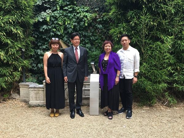 駐法國大使張銘忠於本(106)年6月28日上午11時在駐法國代表處主持台灣已故前輩藝術家楊英風先生鋼雕作品「厚生」中法文說明立牌揭牌儀式暨旅法台灣藝文界人士喜相逢活動,楊英風美術館王維妮館長及家人受邀專程來法共襄盛舉。