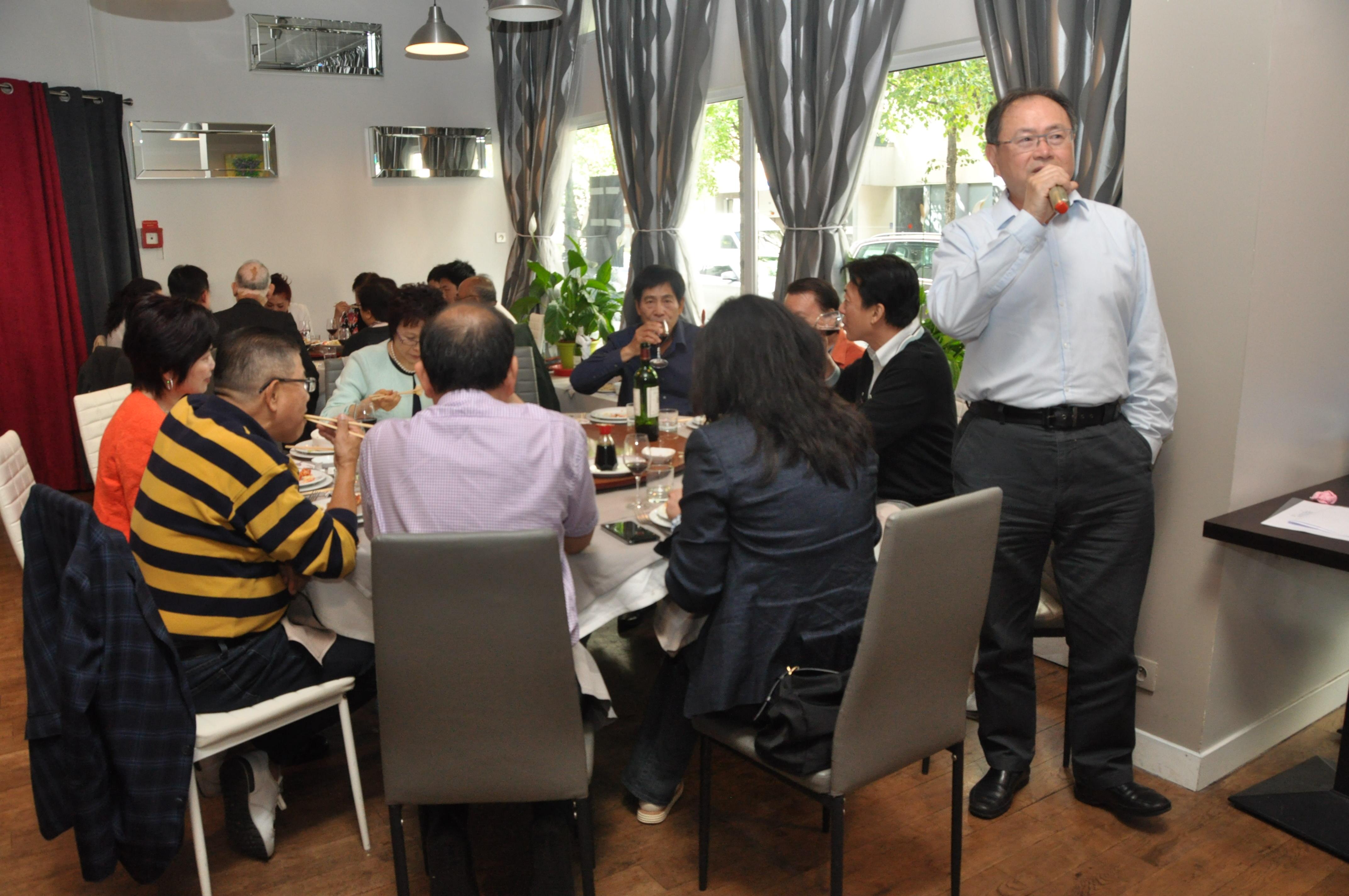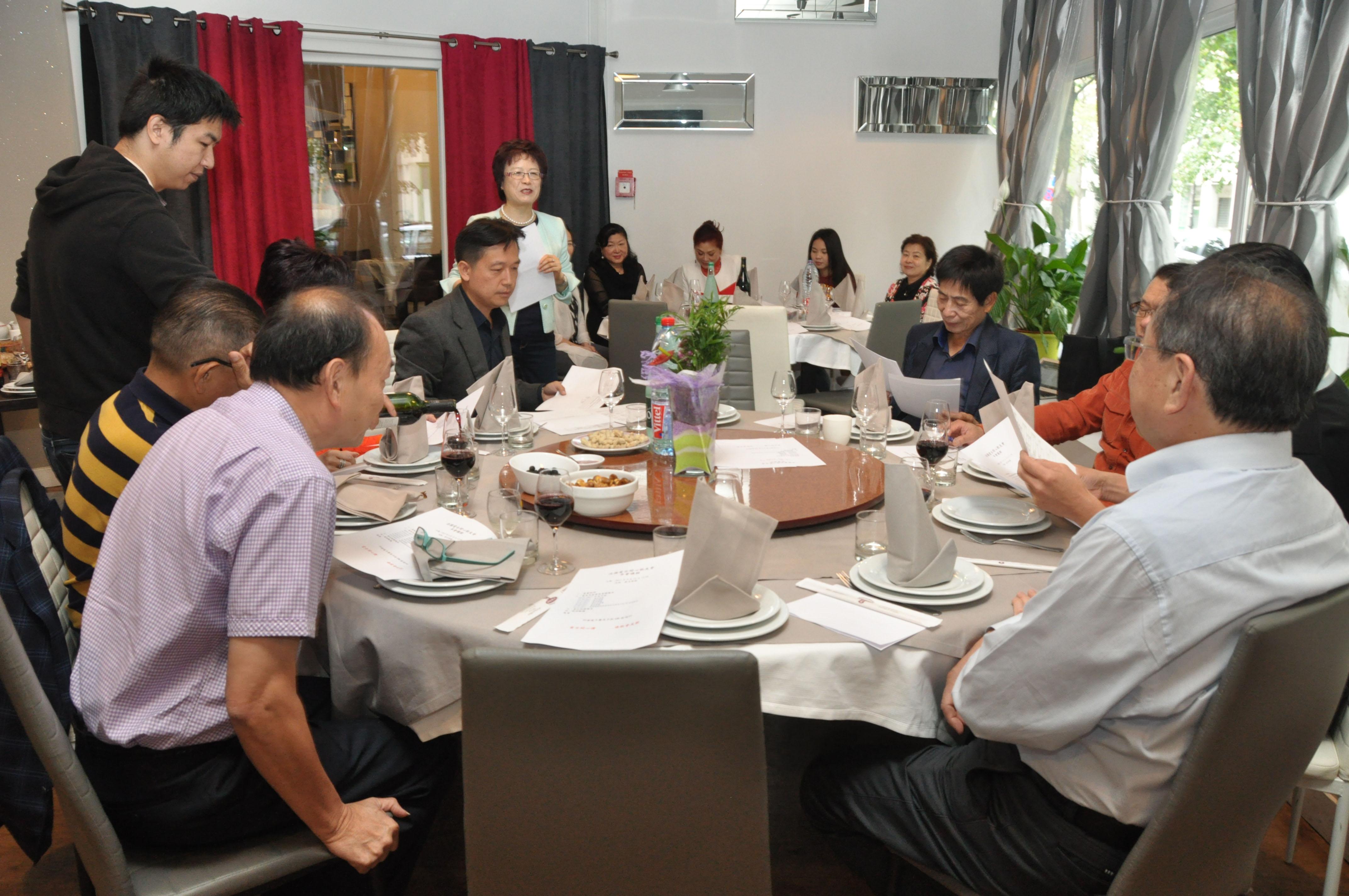法國愛臺開心歌友會於9月10日(週日)中午12時假巴黎第12區圓桌餐廳召開第4屆會員大會。陳秫娟會長邀請蔡國泰、黎輝、林奇雋、李永慶、郭珮涵、鄭蓓斐、丘世璿、李河、鄭國震等20餘位僑務榮譽職人員及鄉親齊聚一堂,策勵會務發展。駐法國代表處張大使夫人及僑務組林宏穎組長也應邀到場參加。 陳會長致詞感謝會員們大力支持及參與,祝福大家繼續精進歌藝,身心越唱越健康;接著簡報2016-2017年會務及活動概況。與會人員都對陳會長熱誠服務會友、同好的辛勞與付出報以熱烈掌聲。 張大使夫人應邀致詞時,勗勉、肯定法國愛臺開心歌友會提供很好的練歌平台,讓原本不善於唱歌的人,現在可以一首接一首地唱歌;另外指出,唱歌是最有益於延年益壽的活動,因為歡唱高歌最能宣洩負面情緒與能量,鼓勵在座會員會友們繼續開心歡唱。 林奇雋副會長、蔡國泰僑務諮詢委員亦先後應邀致詞,鼓勵大家繼續參與歌友會活動,攜手營造健康、和諧的僑居生活。 各項表訂議程嗣於會計完成財務報告後暫告段落。主辦單位循例準備豐盛美食,讓會員、會友們愉快用餐,開心歡唱,盡情聯誼交流;活動氣氛十分熱絡。 圖說: