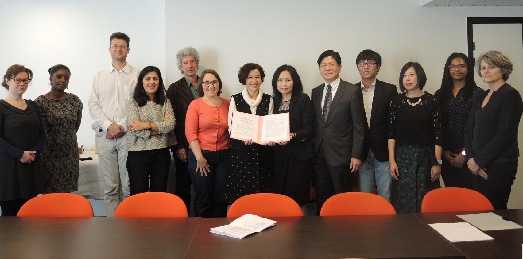 駐法國代表處教育組陸美珍組長代表教育部國際及兩岸教育司,於10月20日與法國國家科學研究中心(CNRS)及法國高等社會科學院(EHESS)簽署設置臺灣研究講座合作備忘錄,這是首件由臺法合作,在法國大學校院設置的臺灣研究主題計畫。張大使偕教育組同仁觀禮並致詞。