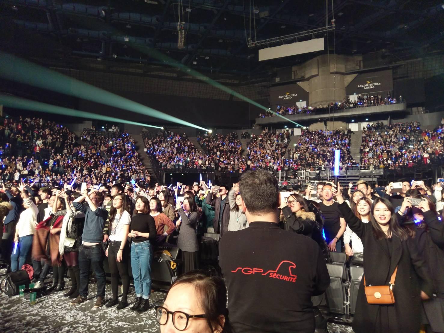 我國知名搖滾樂團五月天 「人生無限公司」歐洲巡迴演唱會3月2日晚間在巴黎AccorHotels Arena隆重登場,駐法國代表張銘忠大使夫婦與10幾位同仁特別前往現場觀賞精湛的演出。