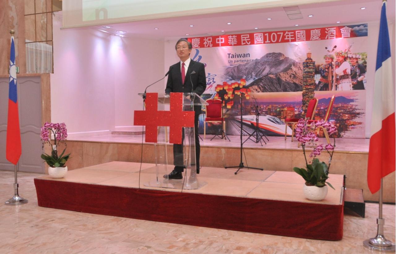 Tous les membres du Bureau de Taiwan en France et moi-même sommes ravis de vous accueillir ici ce soir pour célébrer ensemble la fête du Double-Dix. C’est la première réception du Double-Dix que j’organise depuis mon arrivée en France le 16 juillet dernier. Je suis donc particulièrement heureux de célébrer avec vous la 107ème Fête Nationale de la ROC (Taïwan) une semaine en avance. Mes collègues se sont tous mobilisés ces dernières semaines pour vous rendre cette soirée la plus agréable possible. Votre présence témoigne de l’amitié que nous partageons et de nos relations étroites dans de nombreux domaines.