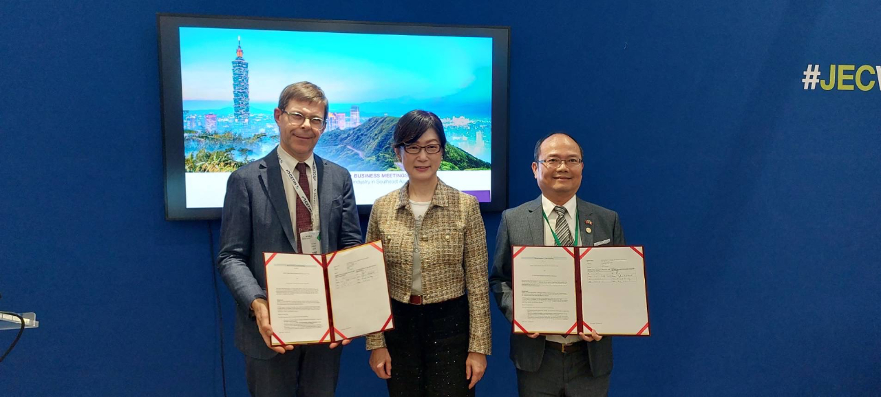 Dans le cadre du salon JEC World 2025 qui s'est déroulé du 4 au 6 mars au parc des expositions de Paris-Nord Villepinte, l'Ambassadrice Clémentine Pei-Chih HAO a assisté à la signature d'un protocole d'entente entre le Centre de recherche et développement des industries du métal à Taïwan (Metal Industries Research & Development Centre MIRDC) et le Centre technique des industries mécaniques en France Cetim. Ce protocole, tout d'abord consacré aux applications de l'hydrogène et à la formation, est appelé à s'élargir ensuite à d'autres domaines comme les nouvelles énergies ou l'aérospatial pour renforcer le rôle de Taïwan dans la chaîne mondiale d'approvisionnement et l'ouverture de nouveaux marchés.