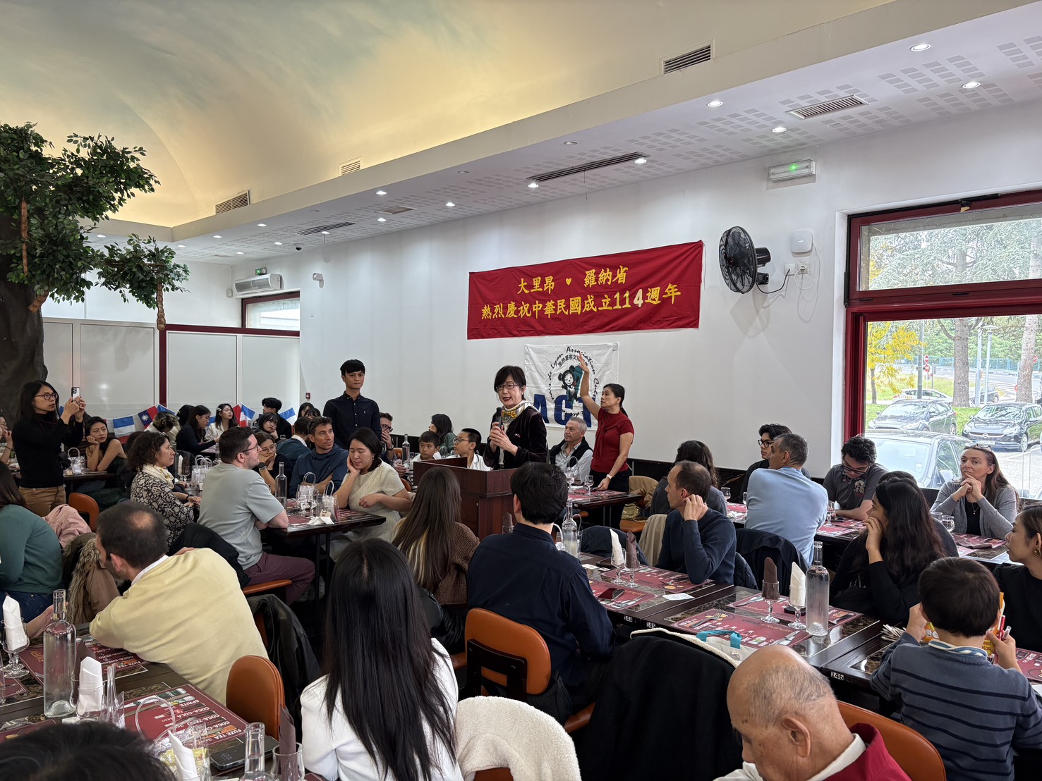 C’est le 11 octobre que l’Association culturelle des Taïwanais de Lyon a célébré la Fête nationale de la ROC Taïwan au cours d’un repas auquel étaient notamment conviés la Représentante Amb. Clémentine Pei-Chih HAO et différents membres de nos bureaux de représentation à Paris et Aix-en-Provence. Parmi les plus de 200 personnes participantes se trouvaient également des membres de l’association, de nombreux Taïwanais résidant dans la région, des étudiants et leurs amis français.