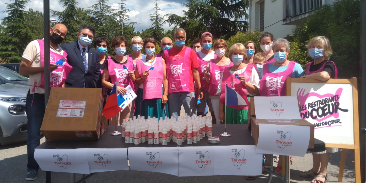 Le Directeur Général du Bureau, M. Chi-chih SHIN, s'est rendu cet après-midi aux Restos du Coeur d'Aix-en-Provence, afin de leur remettre au nom de Taïwan 500 flacons de spray désinfectant fabriqués par Union Biomedical Corporation.
