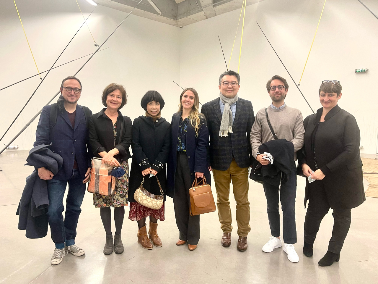 Outre Mmes SATRE et MELIN, le Consul Général et son épouse ont pu faire le tour de l'exposition en compagnie du Directeur des études de l'ESAAix M. Frédéric MATHIEU, du Responsable des relations internationales et de la recherche M. David BOUCHET-DUMAY, de Mme Claire HARSANY, jadis Conseillère et experte technique internationale au Ministère taïwanais de la Culture, ainsi que de l'étudiant taïwanais M. Chen-Kang WANG. Tous ont eu, au milieu de nombreuses œuvres, une discussion des plus vivantes sur les perspectives de coopération artistico-culturelle entre Taïwan et la France.