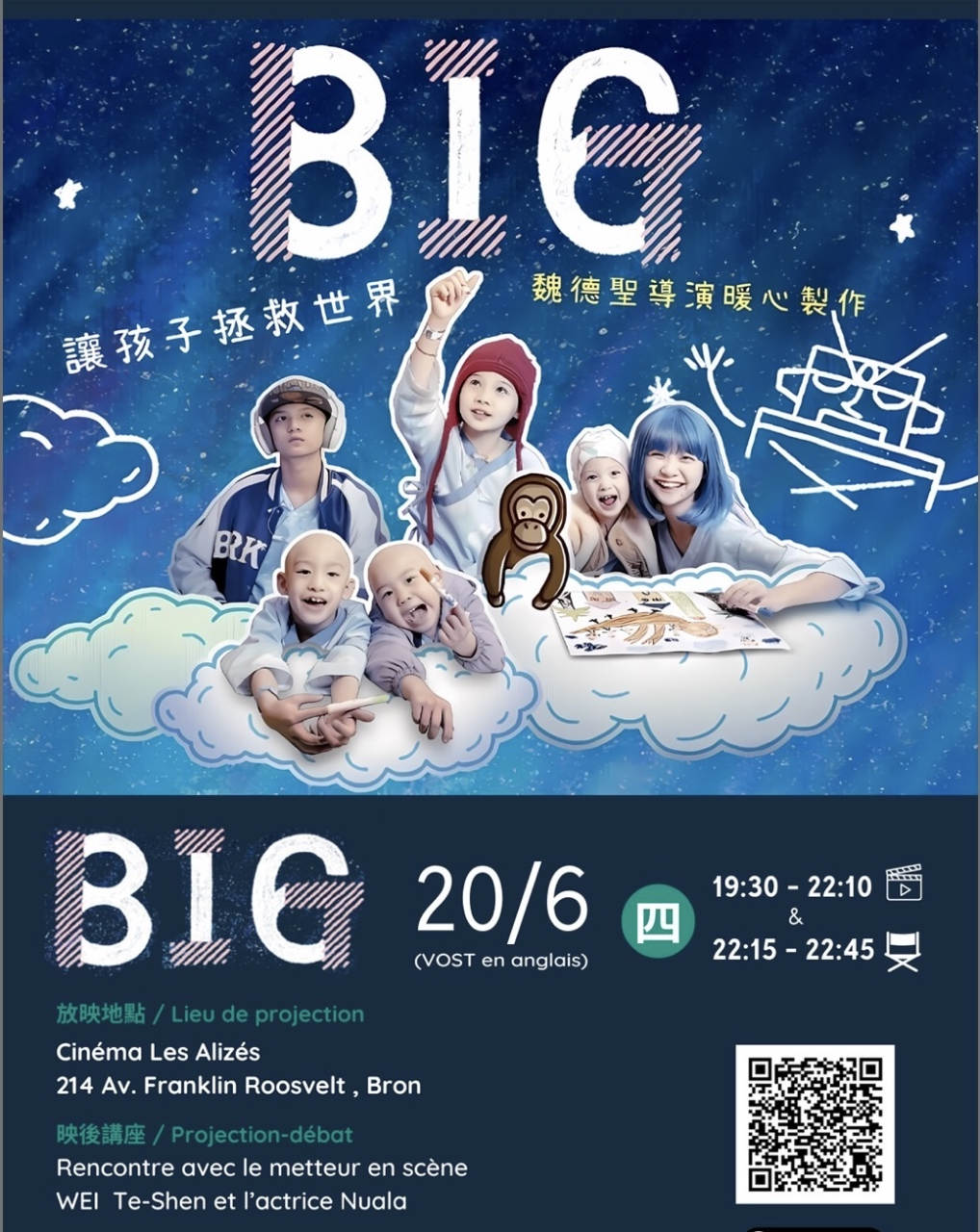 Le Bureau était ravi d'assister le 20 juin à la projection du film pour enfants "BIG" (2023), du réalisateur taïwanais WEI Te-Sheng, durant un événement organisé par l'Association culturelle des Taïwanais de Lyon (ACTL). Venu à l'occasion dans la capitale des Gaules, M. WEI a interagi avec le jeune public et souligné à quel point il était heureux de voir de si nombreux Taïwanais d'outre-mer visionner son film et ressentir les rires, les larmes et l'espoir qu'il propage. Le réalisateur a enfin rappelé que l'œuvre était inspirée de sa propre participation à un documentaire télévisé il y 20 ans, consacré aux enfants amputés à cause de cancer des os. Son film porte ainsi un message rappelant la force de la vie et l'importance de s'y accrocher.