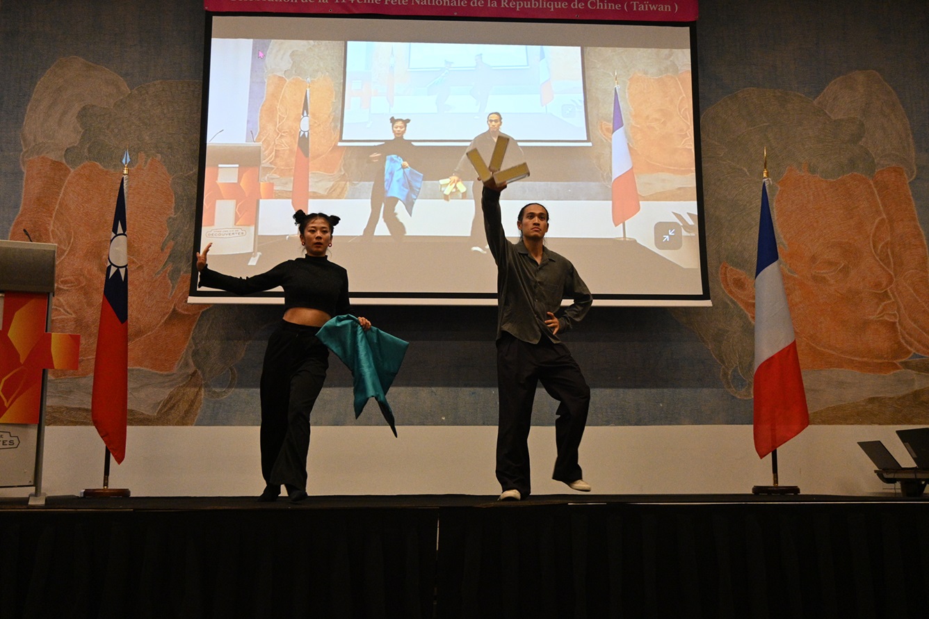 Les Ministères taïwanais des Affaires étrangères et de la Culture ont fait de 2025 l'Année de la culture taïwanaise en Europe, mettant en valeur l'image d'une Taïwan alliant technologie et patrimoine culturel. Dans ce contexte, le Bureau a inclus au programme de la soirée un spectacle de jonglage, proposé par un couple d'artistes de cirque taïwanais basés en France. Egalement au programme, la diffusion des 20 œuvres sélectionnées (dont une provençale, représentant la France) en finale de la toute première édition du concours de courts métrages #FindingTAIWAN, organisée par le Ministère des Affaires étrangères. Enfin, des extraits et affiches de la tournée française de "l'Éventail de Fer", une pièce proposée par le Théâtre Guoguang (Taïwan) et le TNG (Lyon), ont mis à l'honneur la diversité du patrimoine culturel taïwanais, ainsi qu'un savant mélange de tradition et modernité.
