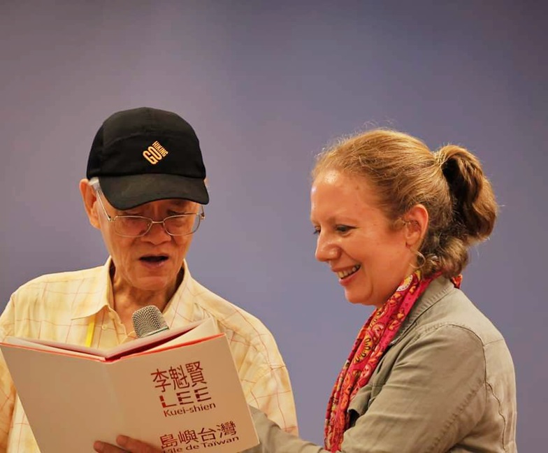 (Elizabeth aux côtés de LEE Kuei-shien, poète, Trésor National de Taïwan.)