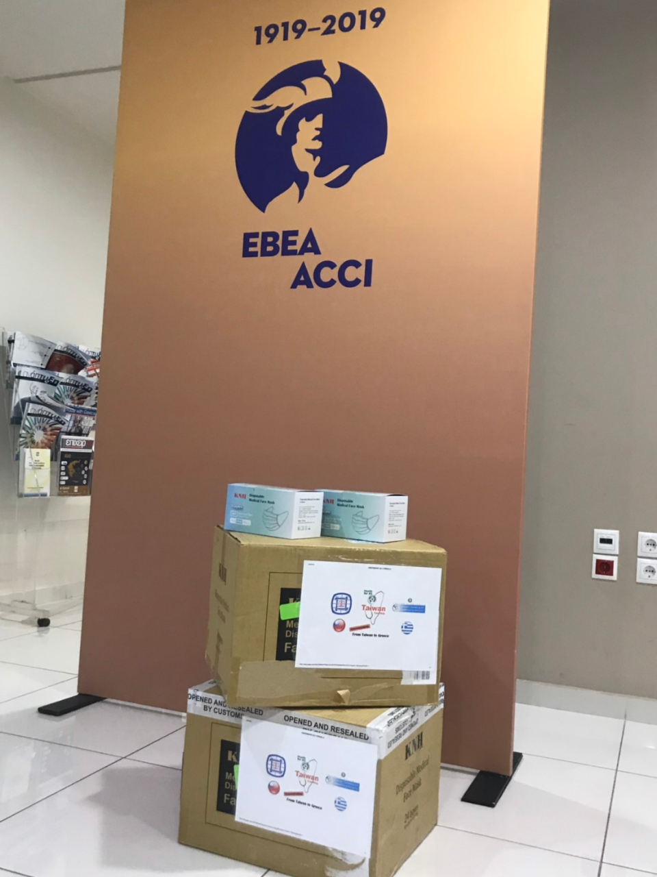 鑒於近來歐洲地區疫情有擴大趨勢,台北市進出口商業同業公會日前捐贈在希臘合作夥伴雅典商公會口罩乙批,由駐希臘代表處代為轉致 。