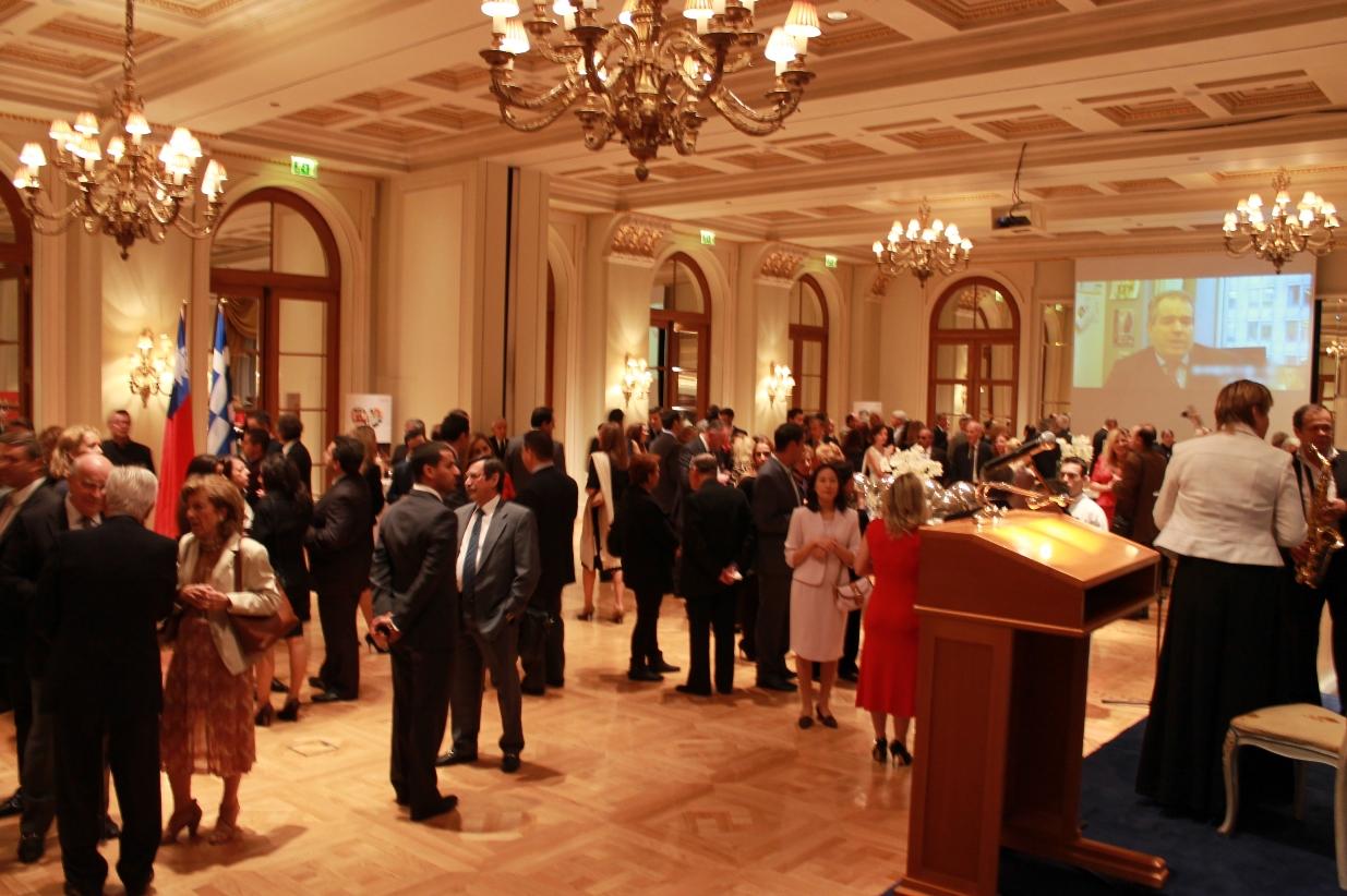 本處於酒會會場入口並列擺置中華民國及希臘大幅國旗,另於舞台上設置以紅、白、藍三色為主、象徵台灣形象及標誌之大型看板。會場中除有4人弦樂團現場演出外,同時播放本年國慶文宣影片,獲得與會賓客一致好評。另於入口處提供之台灣文宣雜誌及光碟,亦引起希臘賓客踴躍索取,均盼有機會赴台旅遊。310120403671