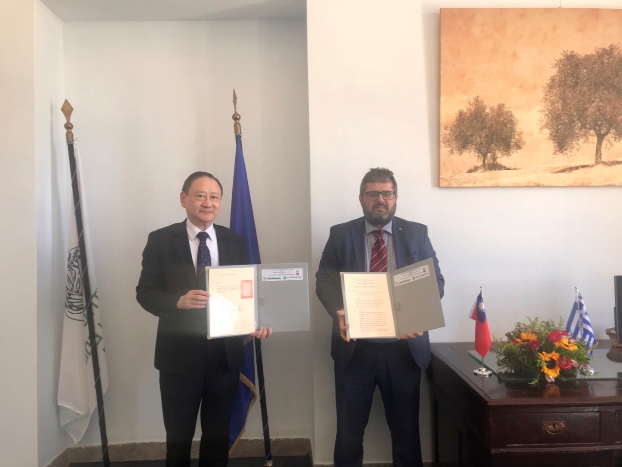 On July 30, 2020, Amb. Sherman Kuo, Representative of the Taipei Representative Office in Greece, visited the Institute of Agricultural Sciences (IGE) in Athens to witness the signing ceremony of the “Memorandum of Understanding on Cooperation Between Institute of Agricultural Sciences, Greece and Agricultural Technology Research Institute, Taiwan, ROC”. This MOU on cooperation serves as the first bilateral agreement focusing on agricultural sector between Greece and Taiwan, aims to promote exchanges of agricultural research and cooperation.