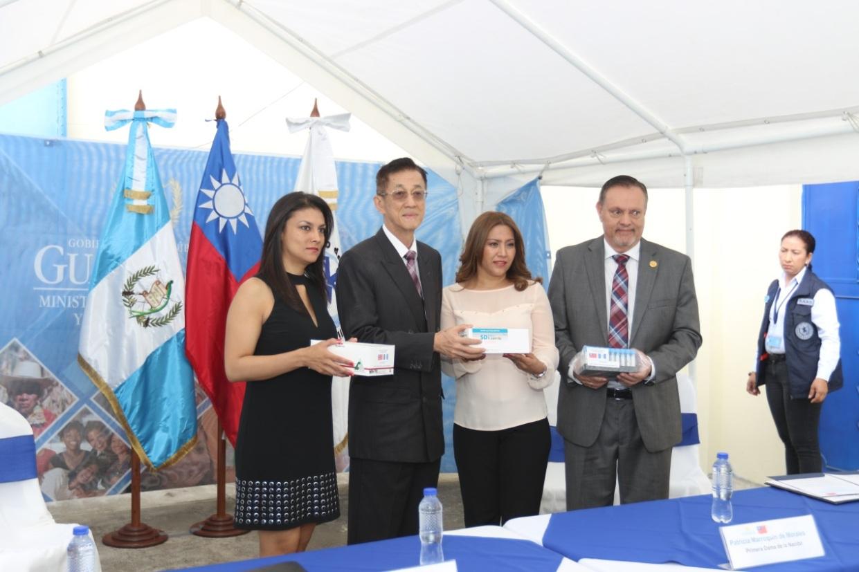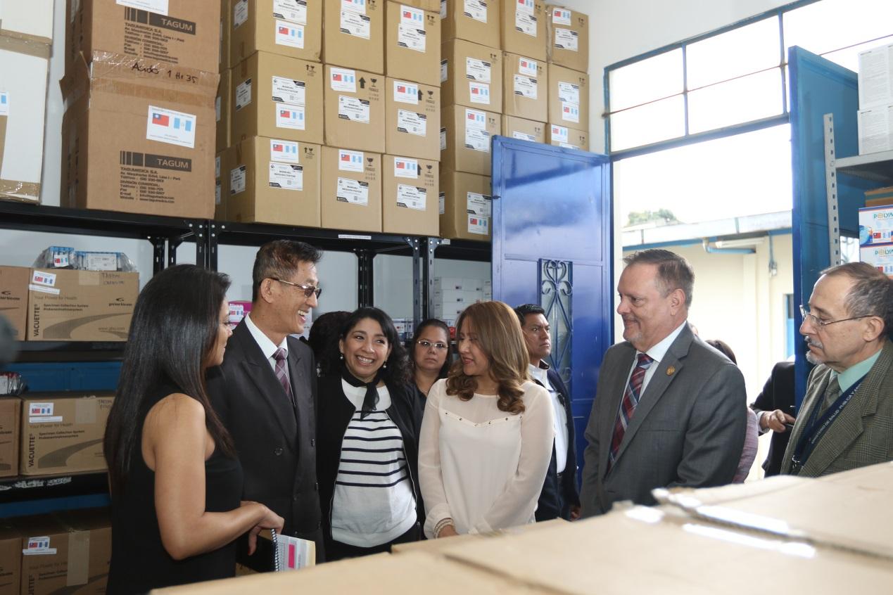 賴大使、瓜國第一夫人、衛長蘇托及阿瑪帝特蘭醫院院長Estrada參觀捐贈品