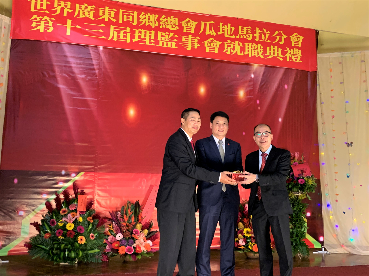 駐館鄭大使伉儷偕館員出席並主持「世界廣東同鄉總會瓜地馬拉分會」於6月25日在瓜京華僑總會會館大禮堂舉辦之第十三屆新任理監事會就職典禮。包括卸任會長關廣才、新任會長劉紀慈、僑務委員趙國良、僑務諮詢委員陳祖建、劉進樟、華人國際獅子會會長陳卓立、華僑總會會長陳國榮、僑務顧問朱育傑、霍應鴻、新一代華人獅子會會長陳肇聲、臺灣商會會長邱錦富等僑領及僑胞,計約250人參與。