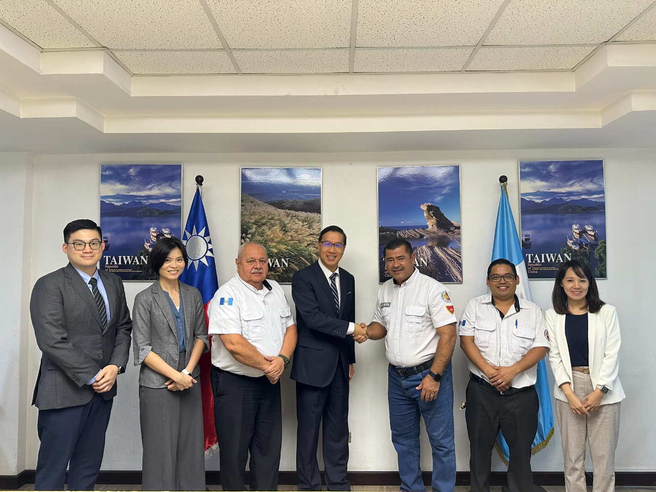曹大使本日會晤瓜地馬拉義消協會指揮官Giovanni Estuardo Cordón及其團隊,C指揮官感謝我政府於消防救災領域之合作,有助強化瓜國災害救援系統。曹大使特別介紹我國中央災害防救運作機制及無人機科技災防應用,雙方並就台瓜兩國義消災害預防、緊急救護及其他重大天災應變工作等議題交換意見,期盼未來續深化雙邊義消合作與交流。