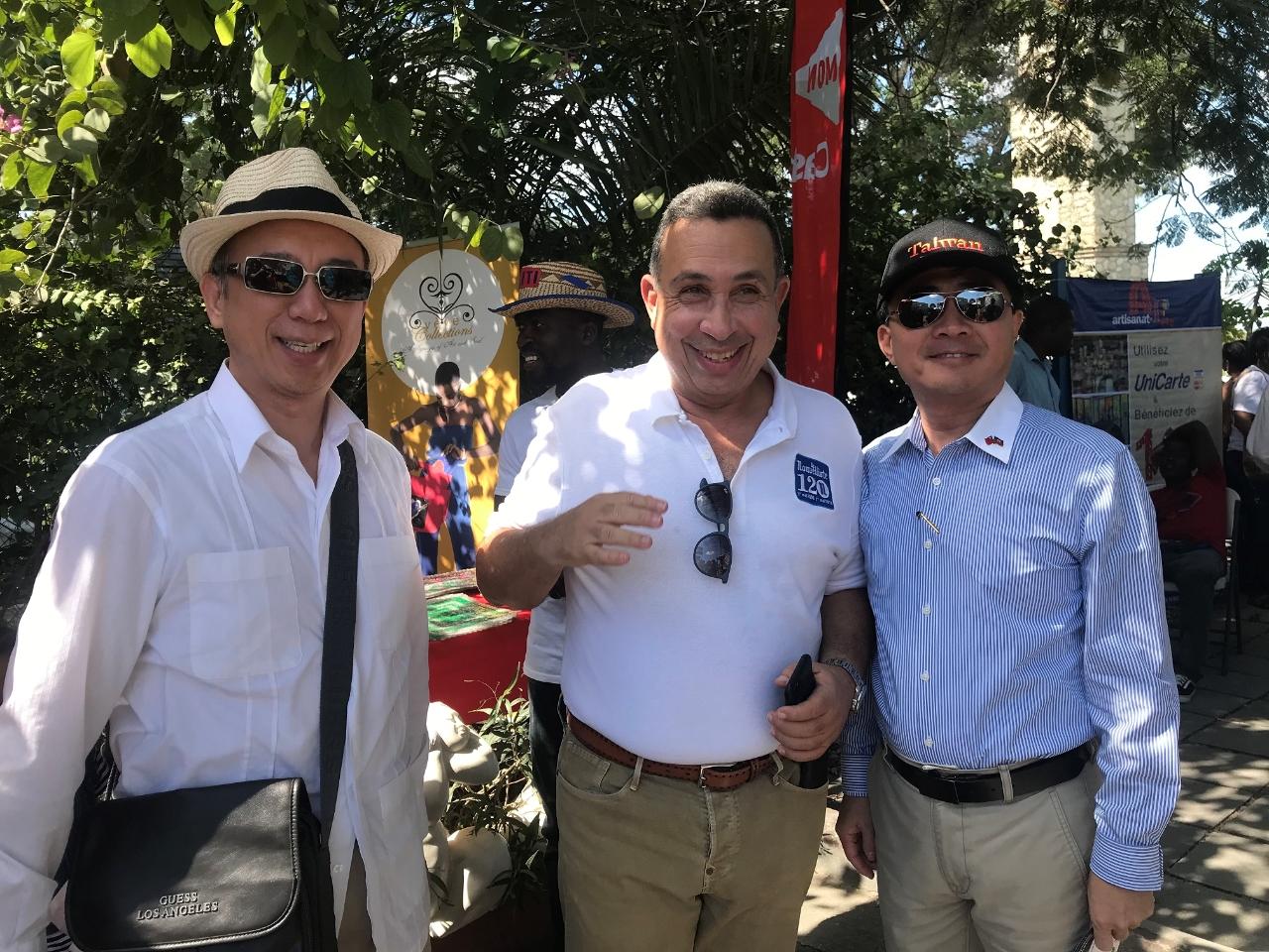 107.11.10駐海地大使胡正浩(右)赴太子港市「甘蔗歷史公園」參訪由「新聞人報」(Le Nouvelliste)及「海地藝術研究暨推廣中心」(IRPAH)合辦之「手工藝博覽會」,並與「新聞人報」社長Max Chauvet(中)合影。