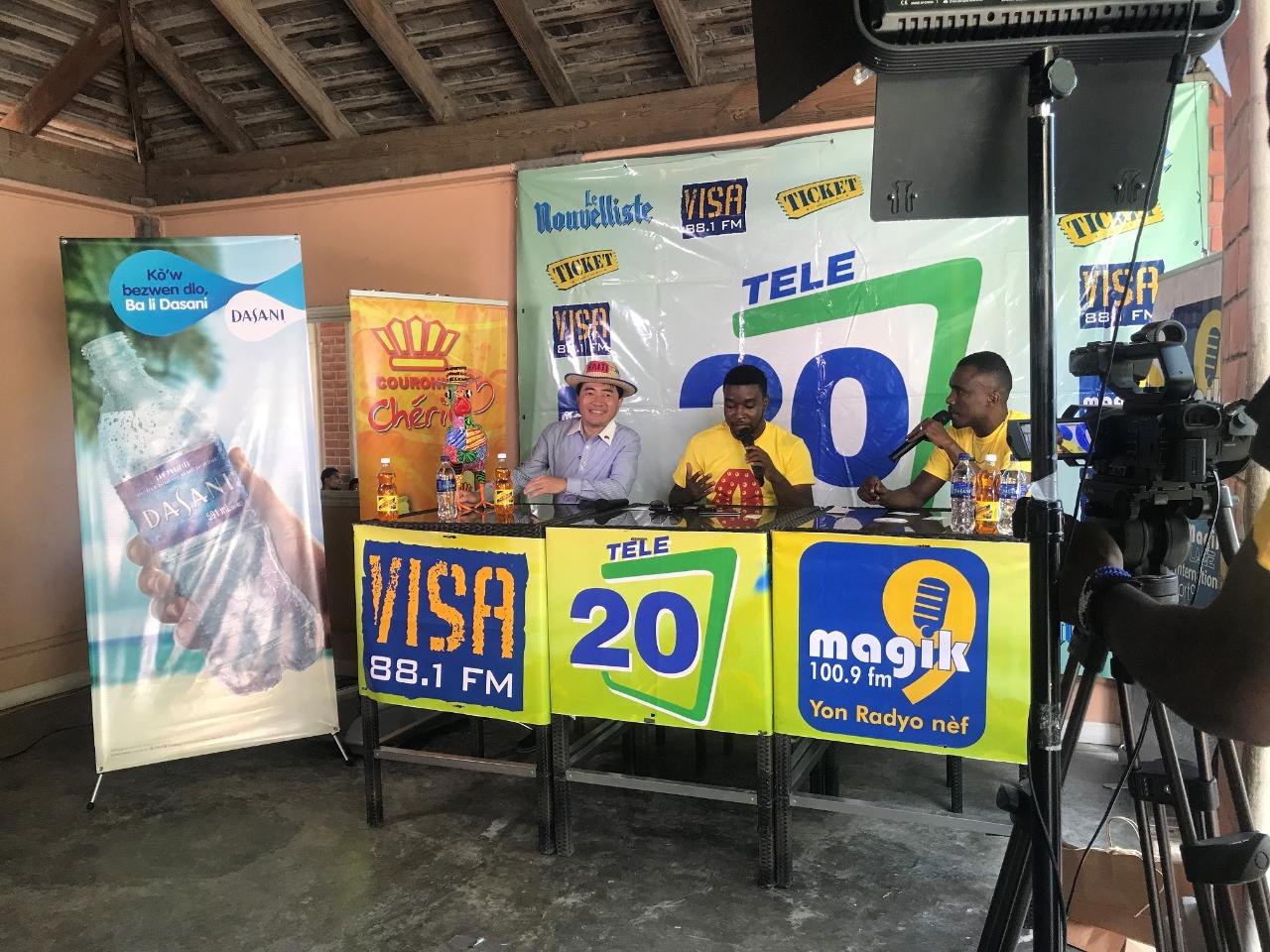 107.11.10駐海地大使胡正浩赴太子港市「甘蔗歷史公園」參訪「手工藝博覽會」,並接受媒體現場專訪。