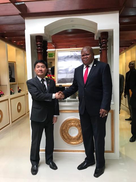 S院長對胡大使蒞訪至表歡迎,肯定臺海合作成果豐碩,並對我援興建最高法院大樓重申謝忱,表示該院大樓是精工之作,堪稱指標,將妥續維護。S院長另邀請胡大使參觀大樓,雙方並就兩國司法體系交換意見,會談氣氛融洽熱絡。