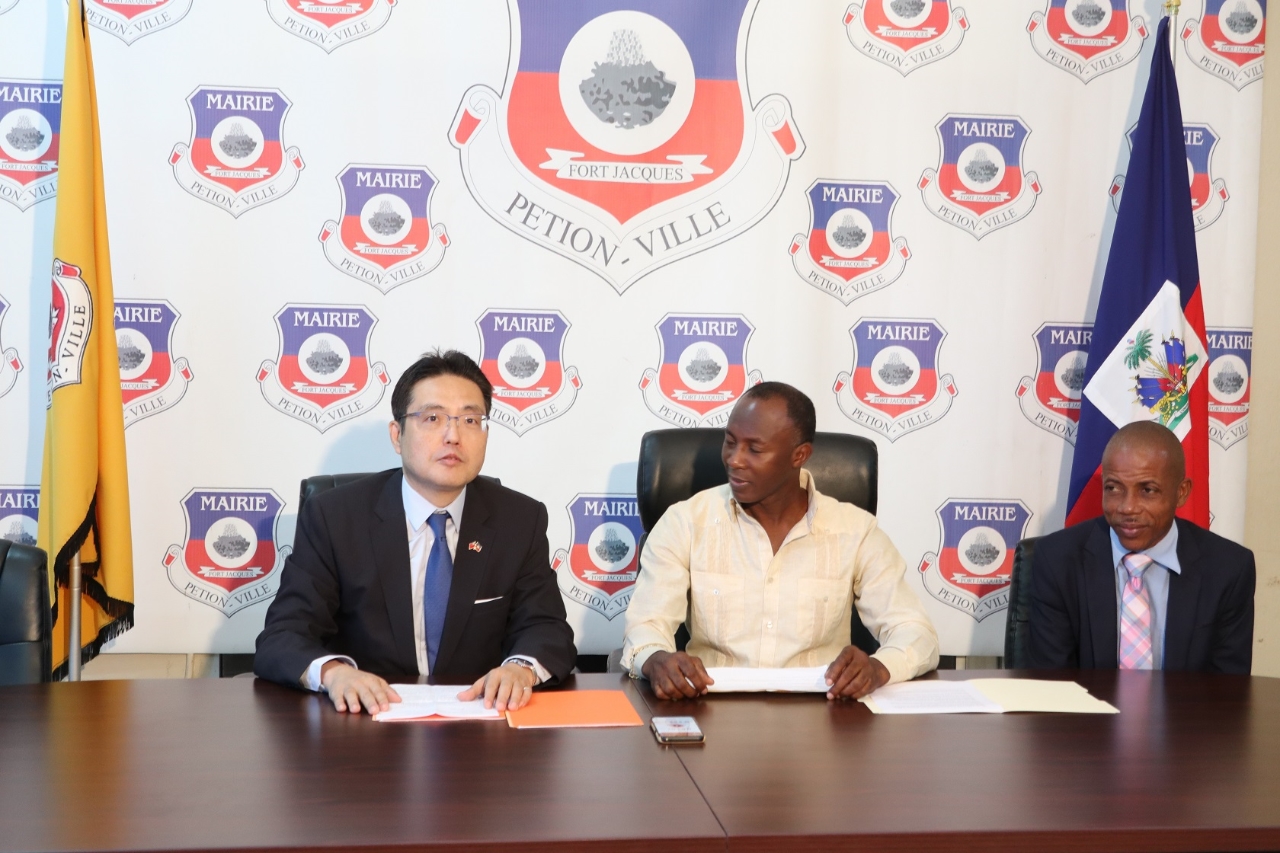 古大使文劍於2020年9月2日將我援海2輛整新垃圾車贈交給海地貝松市政府,盼市府善用資源維護市容整潔及改善市民居住品質。