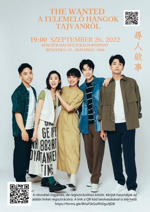 曾獲第32屆金曲獎肯定的台灣純人聲歌唱團體「尋人啟事」即將在匈牙利布達佩斯演出!演出資訊如下: