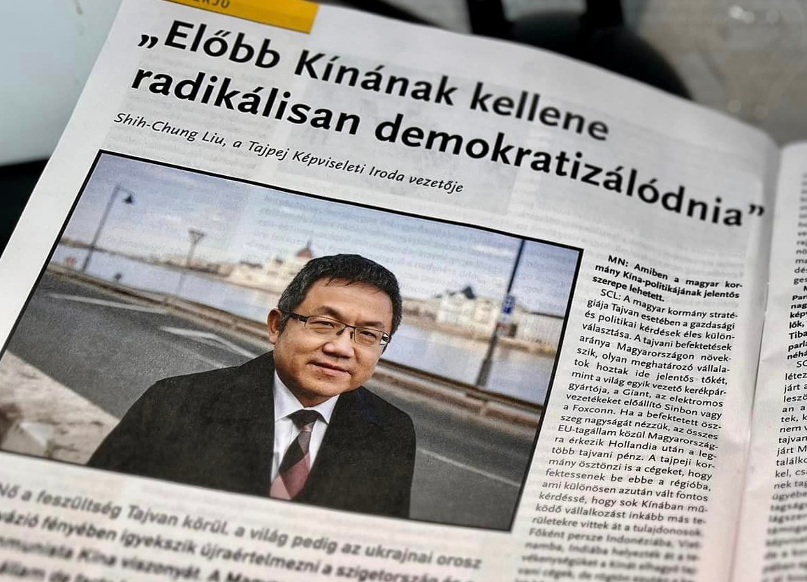 駐匈牙利劉世忠大使接受匈國主流平面媒體《匈牙利橘報》周刊(Magyar Naranc)國際部資深記者Denes Krusovszky專訪,內容已於3月9日最新一期刊出。專訪內容談及台匈關係、俄烏戰爭對台意義及台海局勢等議題。