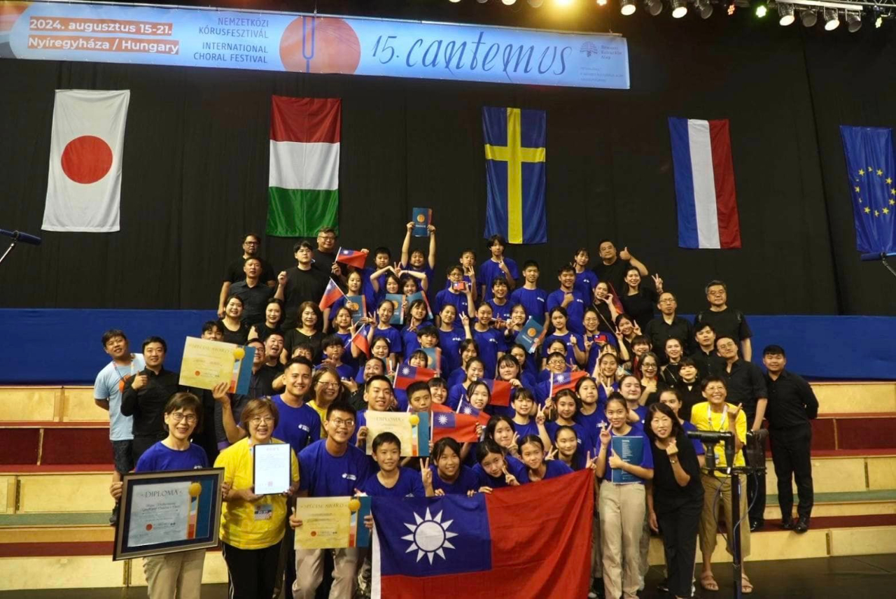 繼台北愛樂室內合唱團於本(113)年8月中旬在匈牙利贊普倫藝術節表演「印象台灣」音樂會,獲得極大迴響外,台北愛樂少年及兒童合唱團也在「第15屆匈牙利Cantemus國際合唱節」獲得優越的成績,在匈牙利、愛沙尼亞、義大利、荷蘭及日本等國團隊中脫穎而出,榮獲金牌獎、「最佳當代作品獎」及「最佳指揮獎」。台北愛樂合唱團現場也分送我國國旗給日本、荷蘭及義大利等隊伍,全場一起高呼「台灣」,場面令人感動。駐匈牙利代表處劉大使世忠亦於第一時間代表致贈總統及副總統賀電。