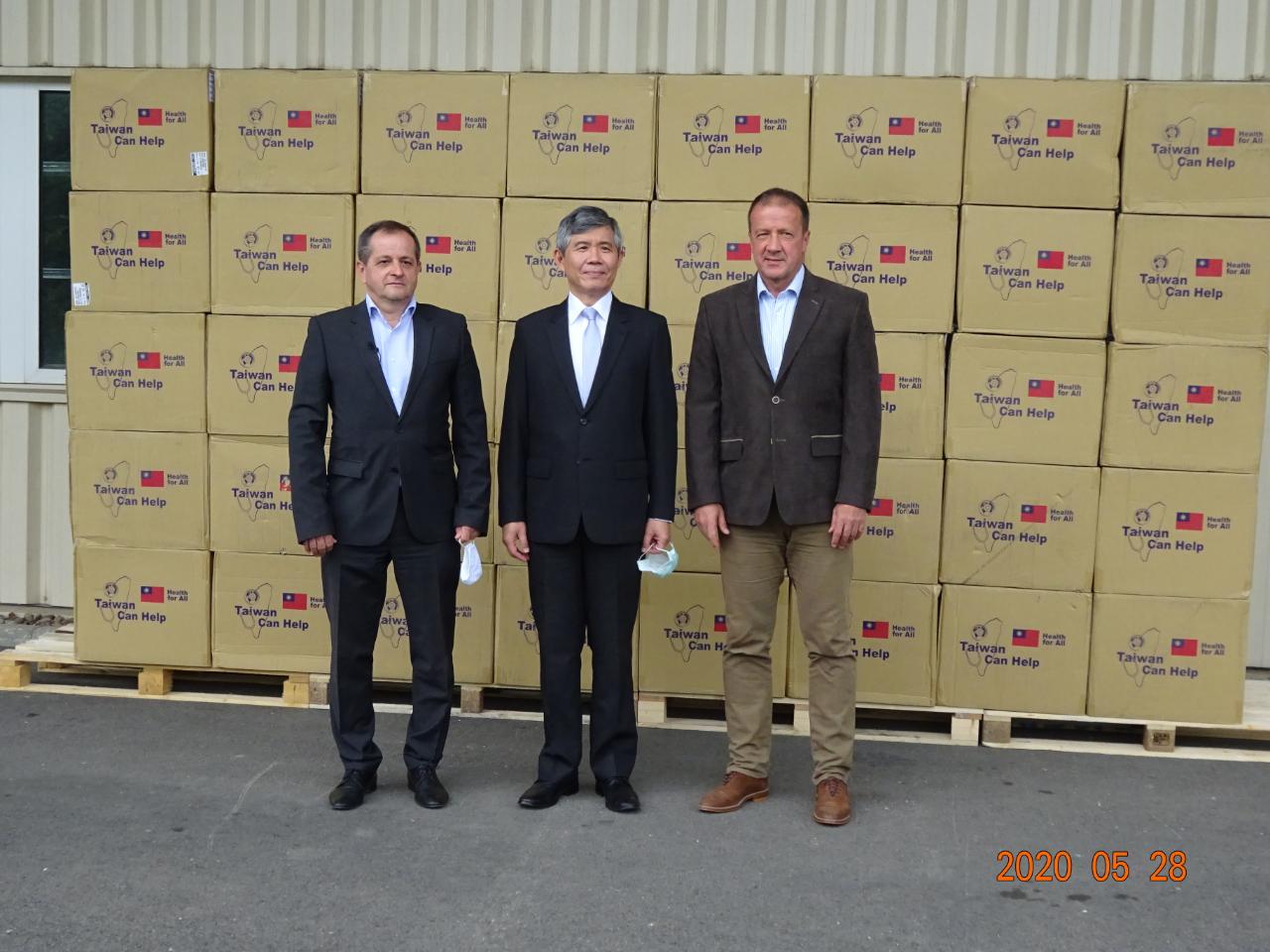 Taipei Representative Office in Hungary conducted a simple and solemn hand-over ceremony at the National Healthcare Service Center (EEK, designated as the recipient agency) on May 28, 2020. Representative Yun-ping Chang handed over 40 cartons of masks to Dr. Gyula Budai, Member of the Hungarian National Assembly, to highlight this pivotal and auspicious moment of the bilateral relations. Dr. Istvan Tiba, Chairman of the Taiwan-Hungarian Parliamentary Friendship Association was present at the ceremony to attest the token of friendship from Taiwan.