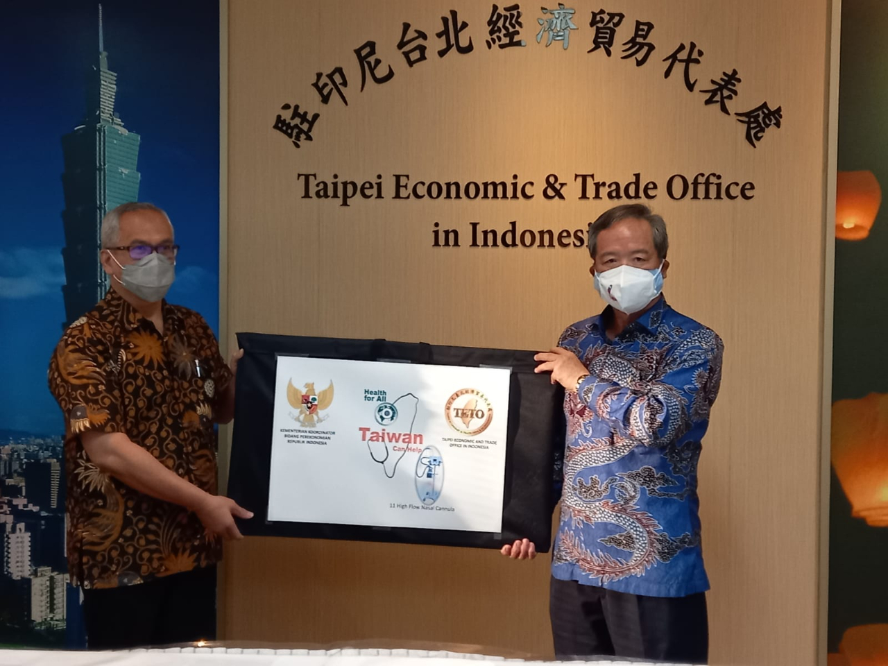 駐印尼代表處日前協助賈永婕女士向印尼經濟協調部捐贈11臺高流量氧氣鼻導管全配系統(High Flow Nasal Cannula, HFNC),該部並予配發至印尼日惹大學(University of Gadjah Mada)附設醫院。駐印尼代表處陳大使忠於110年12月8日下午代表賈永婕女士向印尼經濟協調部捐贈該批物資,印尼方由經濟協調部副部長瓦育(Wahyu Utomo)代表受贈。本次捐贈典禮在駐印尼代表處舉行,儀式簡單隆重。