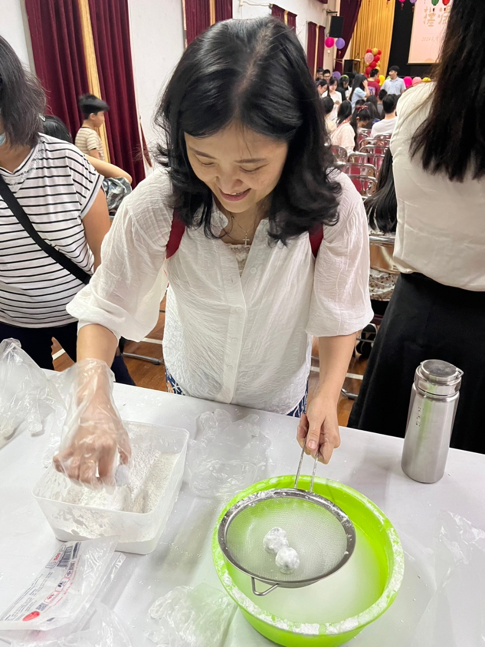 張晉福校長首先說明元宵節是中華文化重要節日之一,尤以搓元宵、猜燈謎更是傳統習俗,並提示第一道燈謎謎面,為活動揭開序幕。接著,教務處同仁準備了豐富的元宵食材,邀請與會師生及家長親手製作元宵,體驗傳統文化樂趣。在搓元宵的過程中,不乏攜家帶眷一同參與者,大家一起搓出圓圓的元宵,象徵著闔家團圓,場面十分溫馨。