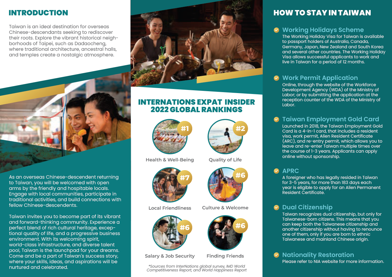 Are you overseas-Chinese seeking to return to Taiwan? Click inside to explore valuable insights into living conditions, highlights of Taiwanese culture, and a warm embrace of your roots. Get ready to embark on an extraordinary journey of rediscovery and create lasting connections with your cultural heritage while reshaping your career path.