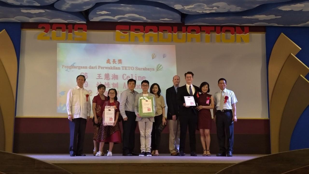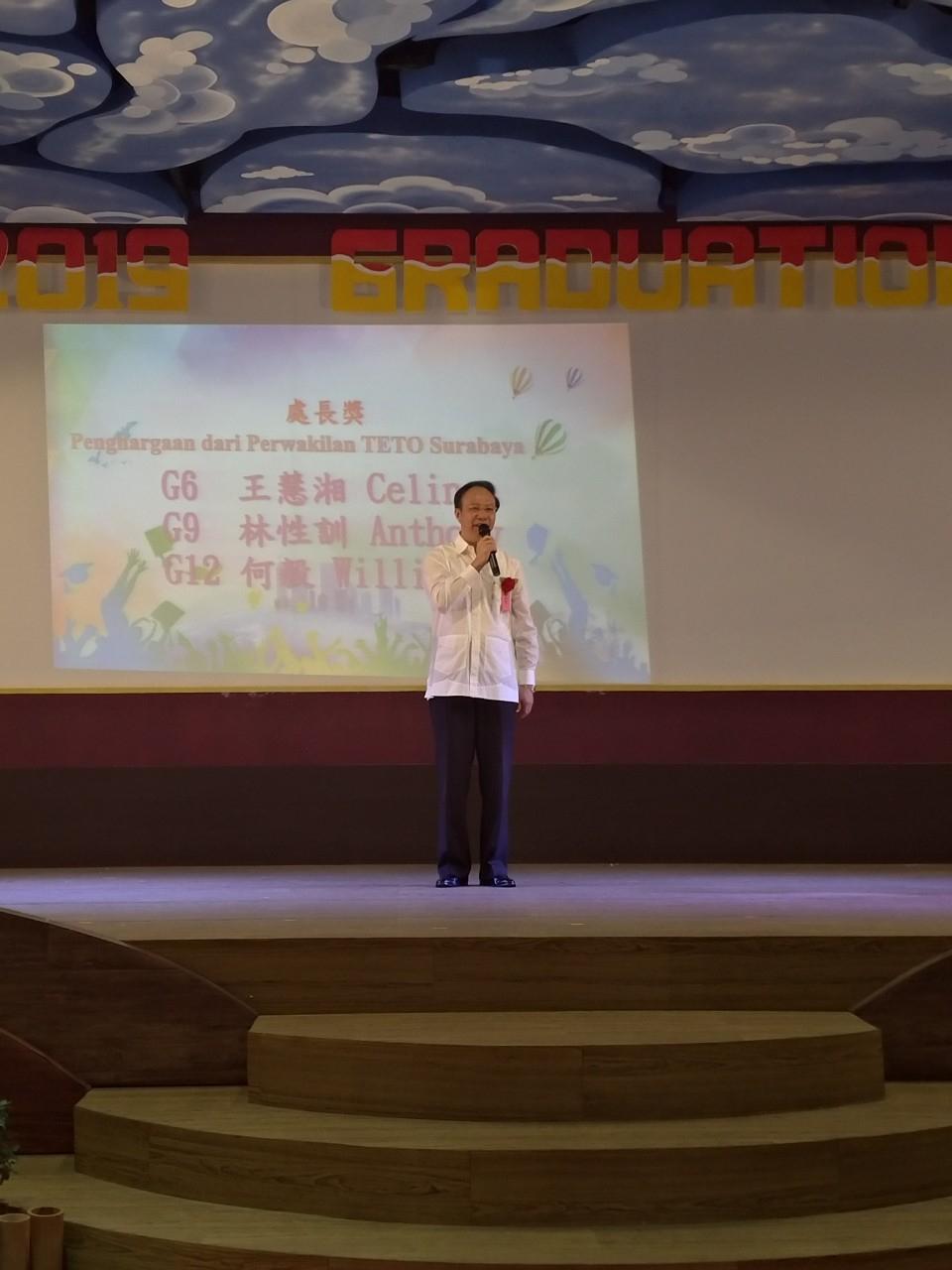 駐泗水辦事處林鼎翔處長夫婦偕同仁於6月15日應邀出席泗水臺灣學校舉辦之中小學應屆畢業生聯合畢業典禮,並在典禮中致詞及頒發優秀畢業生獎以資鼓勵。