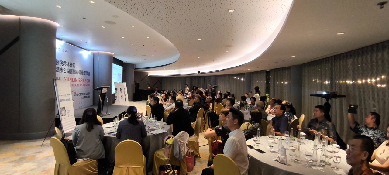 Ten-member of medical representatives from National Taiwan University Hospital Yunlin Branch, led by Superintendent Ma Hui-ming, went to Surabaya and Malang, Indonesia, for an international medical exchange from 2024 October 20 to 26. “NTUH - Personal Healthcare” was held on the evening of the 22nd. Five doctors and one professional explained new medical knowledge and the application of AI technology in medical care. More than 80 guests, Taiwan Business Club members and diaspora members attended the workshop.