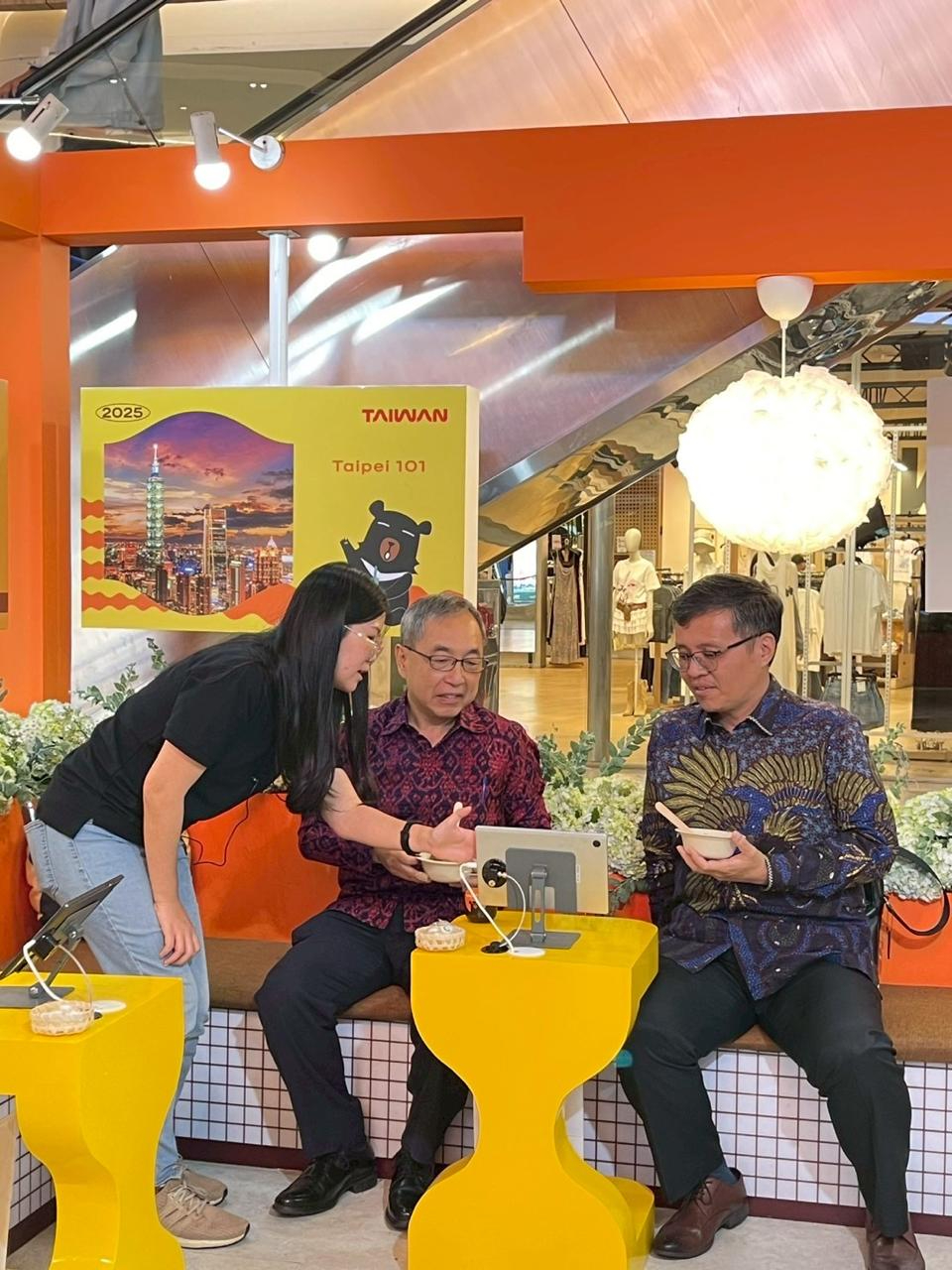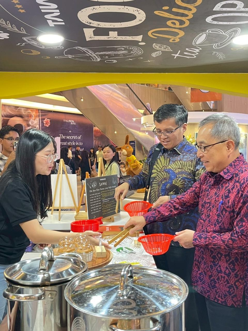 Director General Isaac Chiu bersama Direktur Chou Shih-pi dari Kantor Layanan Pariwisata Biro Pariwisata Kementerian Perhubungan dan Komunikasi di Malaysia mengunjungi stan di area pameran, kemudian bersama-sama naik ke atas panggung pada upacara pembukaan untuk menyambut wisatawan Indonesia berlibur ke Taiwan.