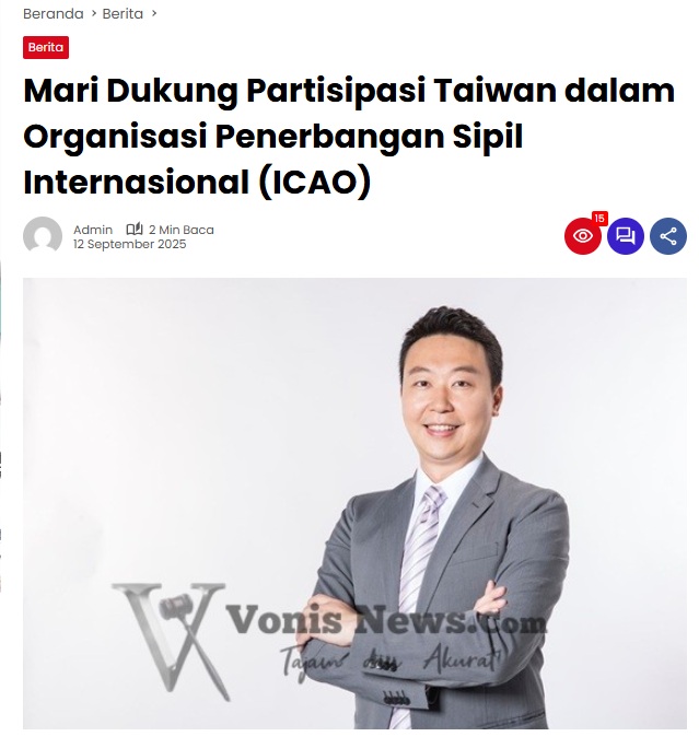 Menteri Transportasi dan Komunikasi Chen Shih-kai menulis artikel untuk mendesak dukungan bagi partisipasi Taiwan dalam Organisasi Penerbangan Sipil Internasional (ICAO)