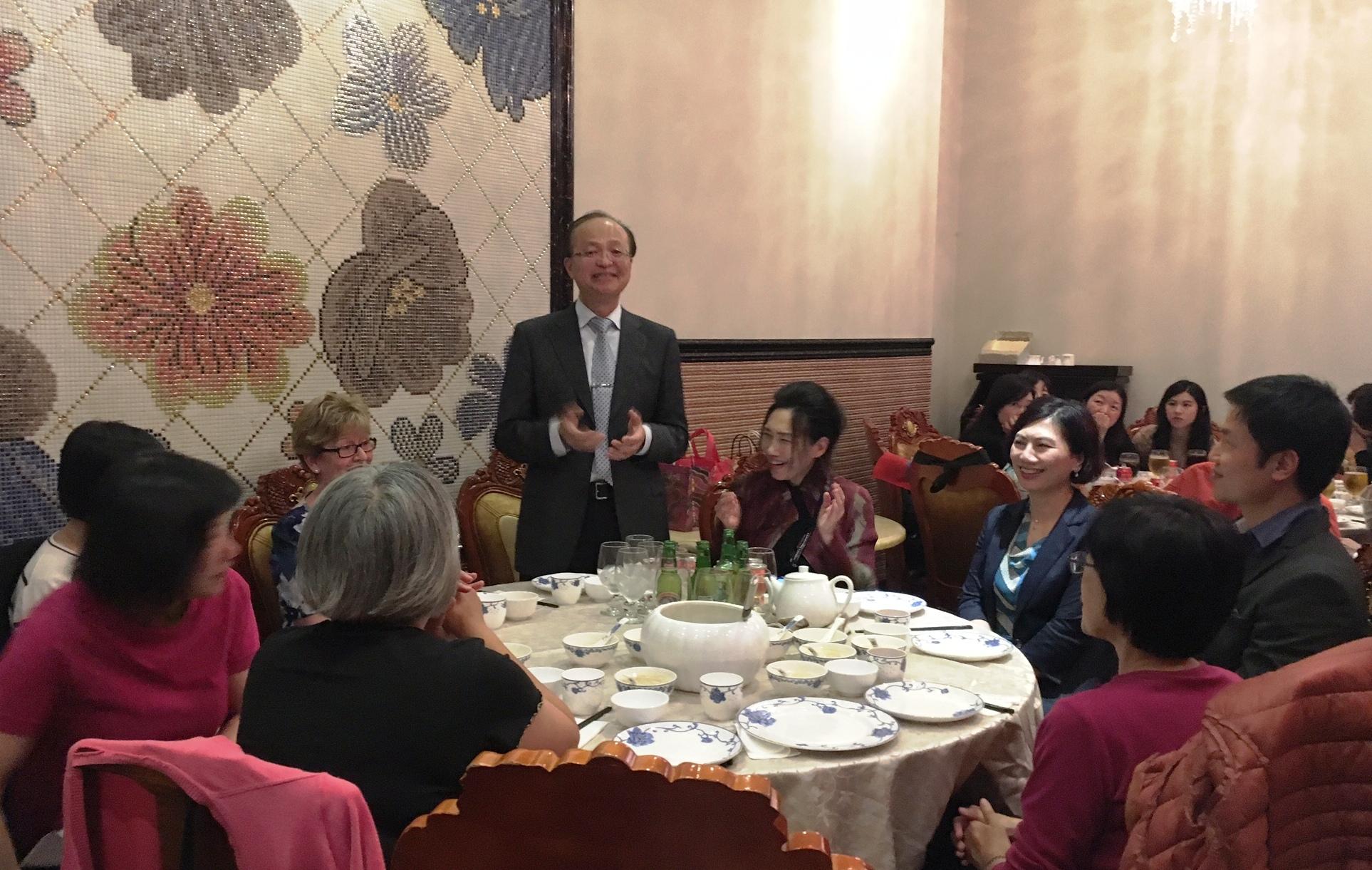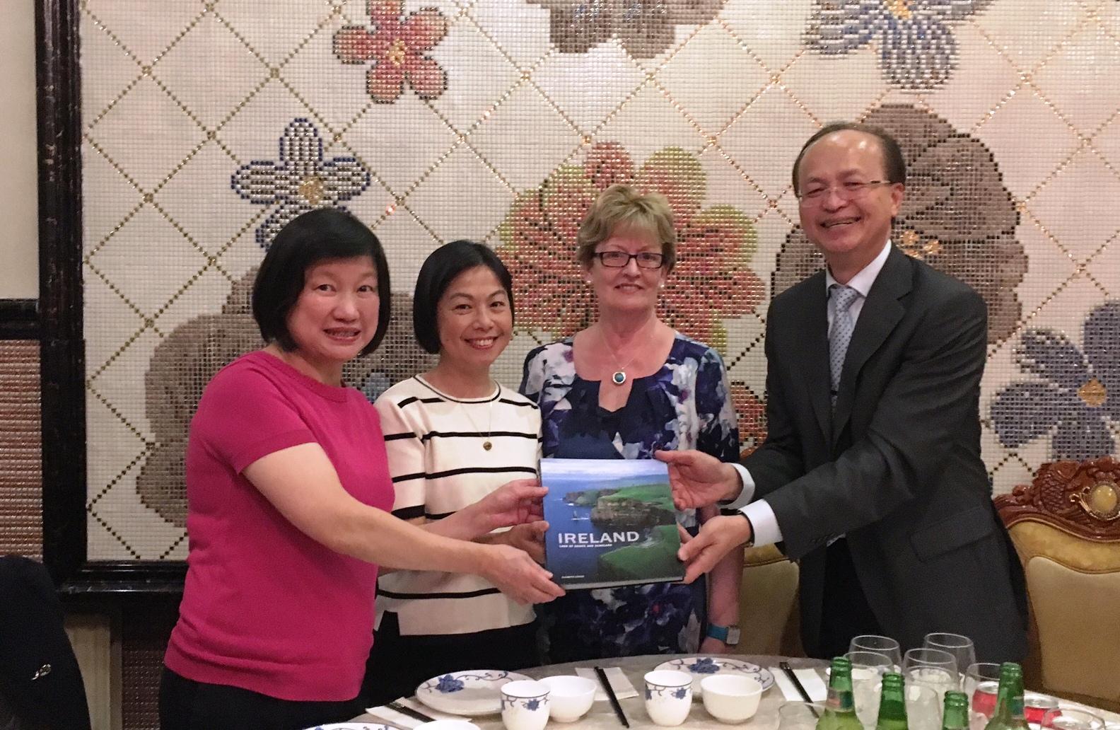 駐愛爾蘭代表處27日安排歡迎餐會,同時邀請「國際護理學會(International Council of Nurses, ICN)」總會長Annette Kennedy出席。杜大使聖觀致詞表示,本屆「國際護理研究年會」我國代表團係各國團隊中人數最多者,除代表我國對參與此一年會之重視,亦凸顯臺灣參與全球非政府組織、貢獻國際社會之決心,並期盼「國際護理研究年會」未來能移師臺灣舉辦,透過學術交流讓世界各國瞭解臺灣護理專業之發展及進步情形,並增進臺灣與國際非政府組織之關係。此外,非常歡迎K總會長應我方邀請將於本年10月訪臺,對強化臺灣與國際及愛爾蘭之護理界的合作交流將極有助益。
