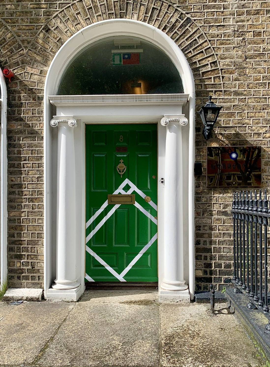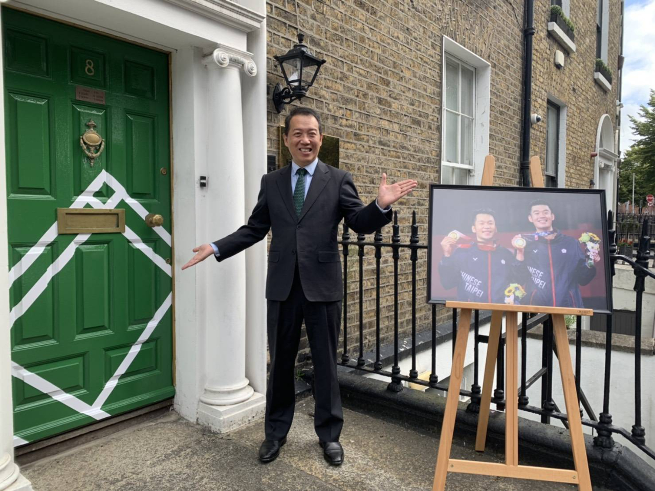 東京奧運台灣獲得史上最佳成績,為了延續興奮之情與團結民氣,也為了強調台灣「自明性」,駐愛爾蘭代表處獲得高雄「#TeamTaiwan in 2021 一卡通」 創意授權 ,並由旅愛台灣設計師Yahui Minnock(蘇雅惠)因地制宜調整 ,推出喬治式建築大門Taiwan in新設計:其中最重要的修改,在於以門上黃銅圓球門把代替羽毛球,既可重溫羽球男子雙打冠軍戰終局一記神準壓線球讓人熱血沸騰的畫面,也雙關地象徵一扭門把推開大門,Taiwan in,就進入了屬於台灣的地點。