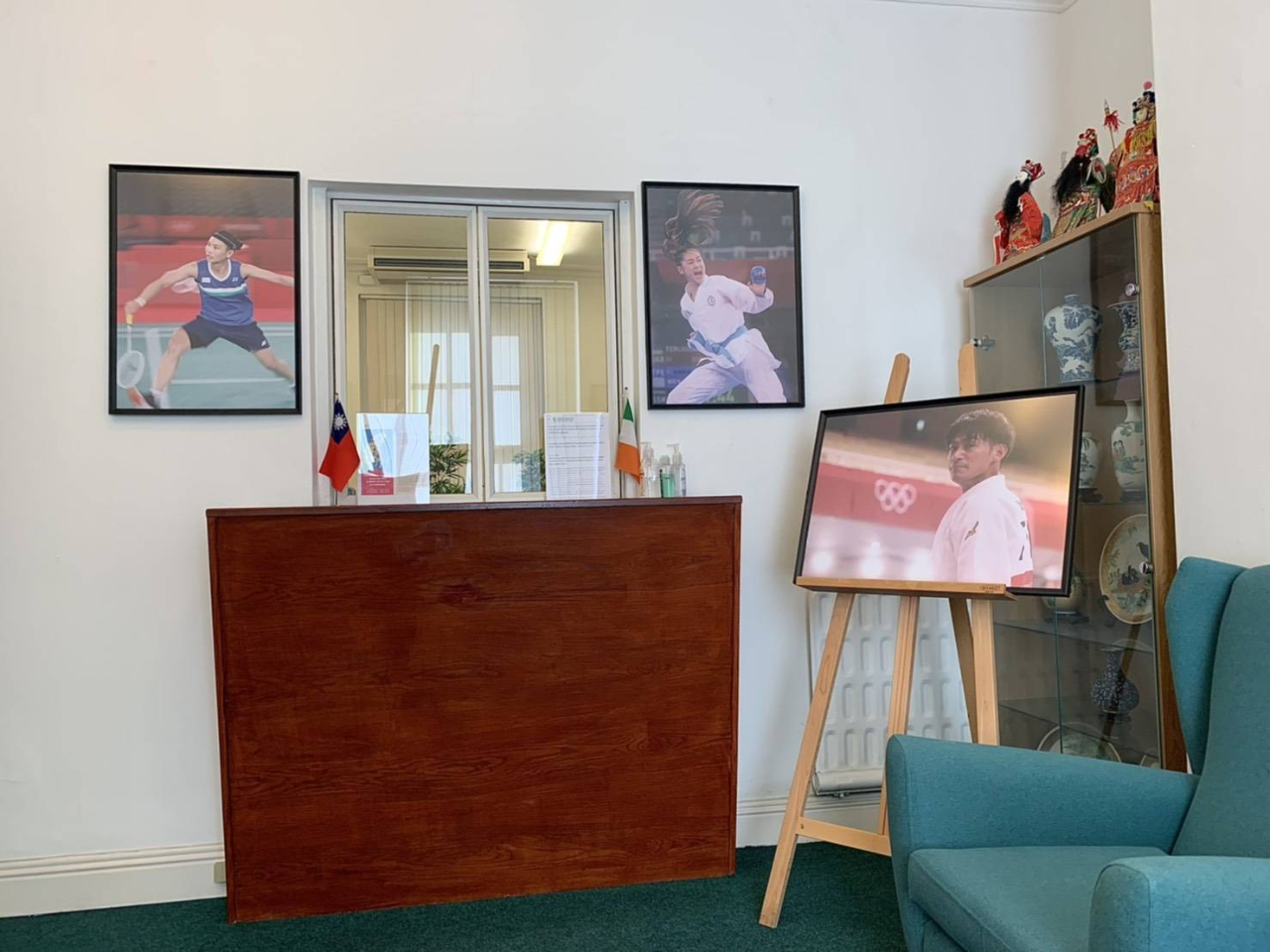 代表處亦向中央社洽購台灣12面奧運獎牌選手場上英姿照片版權,輸出12張大幅海報於領務大廳在今天(8月13日)10:30開始展出,與愛爾蘭友人和僑胞共享台灣榮耀。