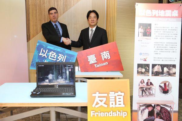賴市長表示,地震發生的當下,市府便接收到來自以色列的關懷,游代表更親自來到臺南了解災情,並分享救災、防災的經驗,最特別的是,游代表還運用舉辦國慶酒會的經費,購置了防震桌送給臺南,非常令人感動。今天的捐贈代表以色列對臺灣的友誼,更代表以色列對臺南市民的愛,由衷感謝。