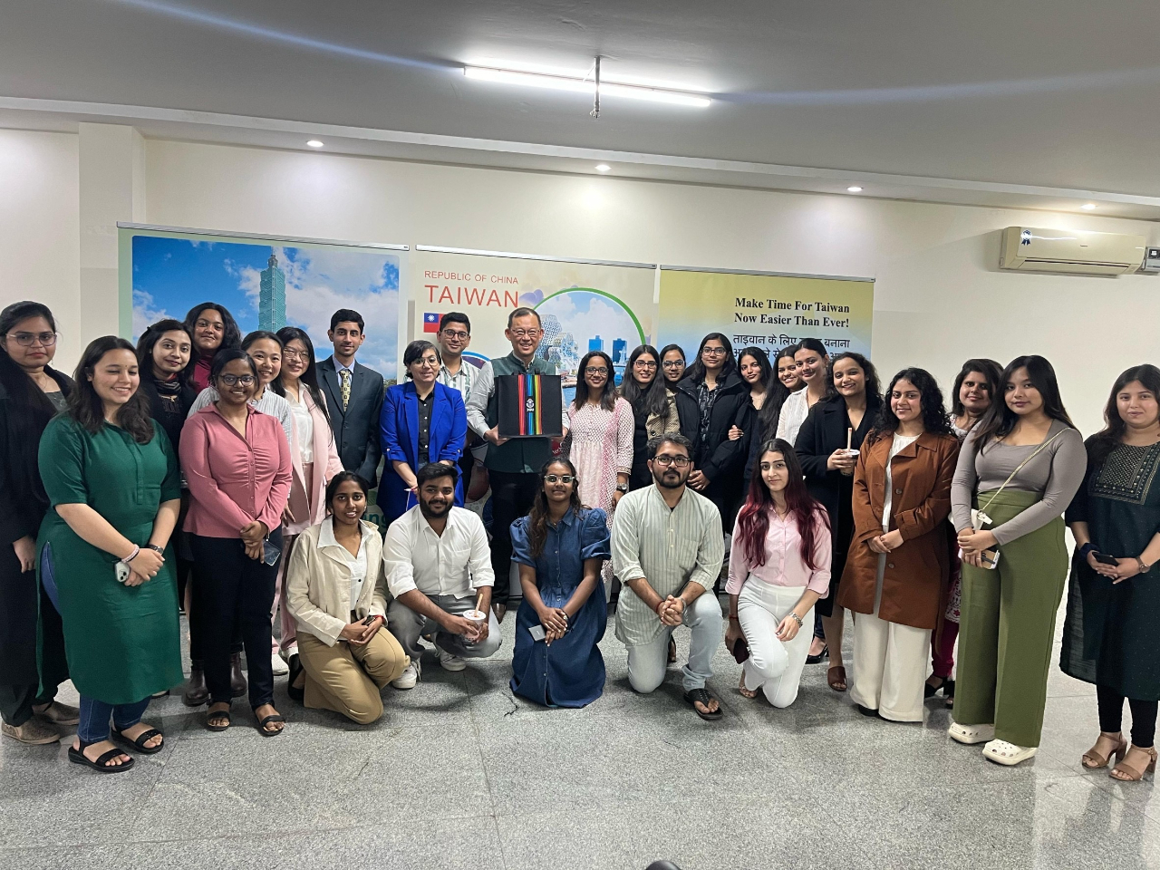 本處陳公使牧民本年2月28日在本處會議室接待Jindal大學國際事務學院東北亞中心教授Manoj Panigrahi、Sriparna Pathak、該校台灣教育中心教師張竹芸、劉容秀及該中心學習華語之印度學士碩士生共27人。